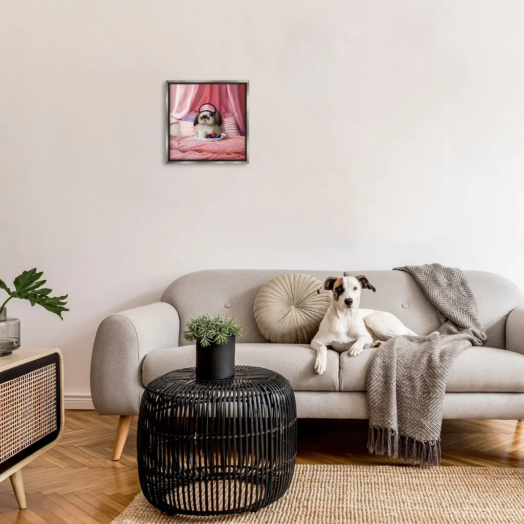 Elevate your home or office to the next level with Stupell Framed Floating Canvas Wall Art. Our premium hand-stretched canvas is mounted securely into a sturdy lightweight frame. The museum-style gap between the wrapped canvas and the box frame gives the illusion of floating artwork. Stupell Wall Art is made in the USA.Features: Dimensions: 18 x 1.7 x 18 Frame, 17 x 1.5 x 17 Canvas ArtFloating Frame Canvas Products are available in sizes 18"x18" and 25"x25". All Floating Frame Canvas Products have a 1.7" Depth.Wall Art is Ready to Hang with Hardware Free Hanging. No Installation required. For Easy Set Up Lean or Layer Artwork on Shelf or Against Wall. Artwork is Permently Fixed into the Frame.Our elevated 1.7" Thick Floating Frame is the perfect complement to our canvas style Wall Art. We use only the highest quality inks in house with industry leading printing solutions. Canvas is hand stretched over a durable wood foundation and then mounted securly into a Modern Box Frame. Made in the USA.Artwork Relates To: Bed, Animal, Mammal, Pet, Blanket, Cup, Coffee, Bunny, Rabbit, Cozy, Relax, PillowDesign by Lucia Heffernan