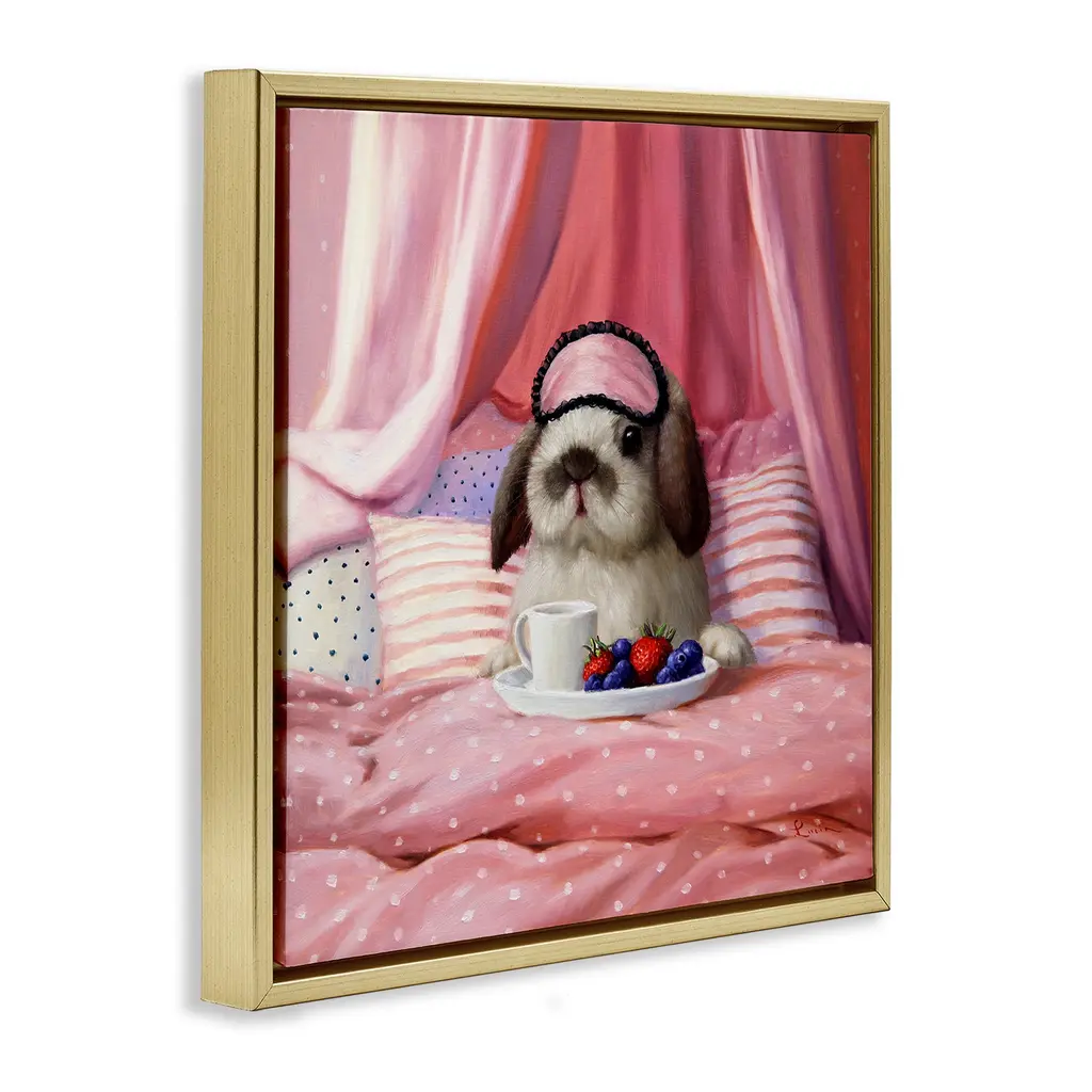 Stupell Bunny With Breakfast In Bed Framed Floater Canvas Wall Art Design By Lucia Heffernan - 25 X 25 - Gold