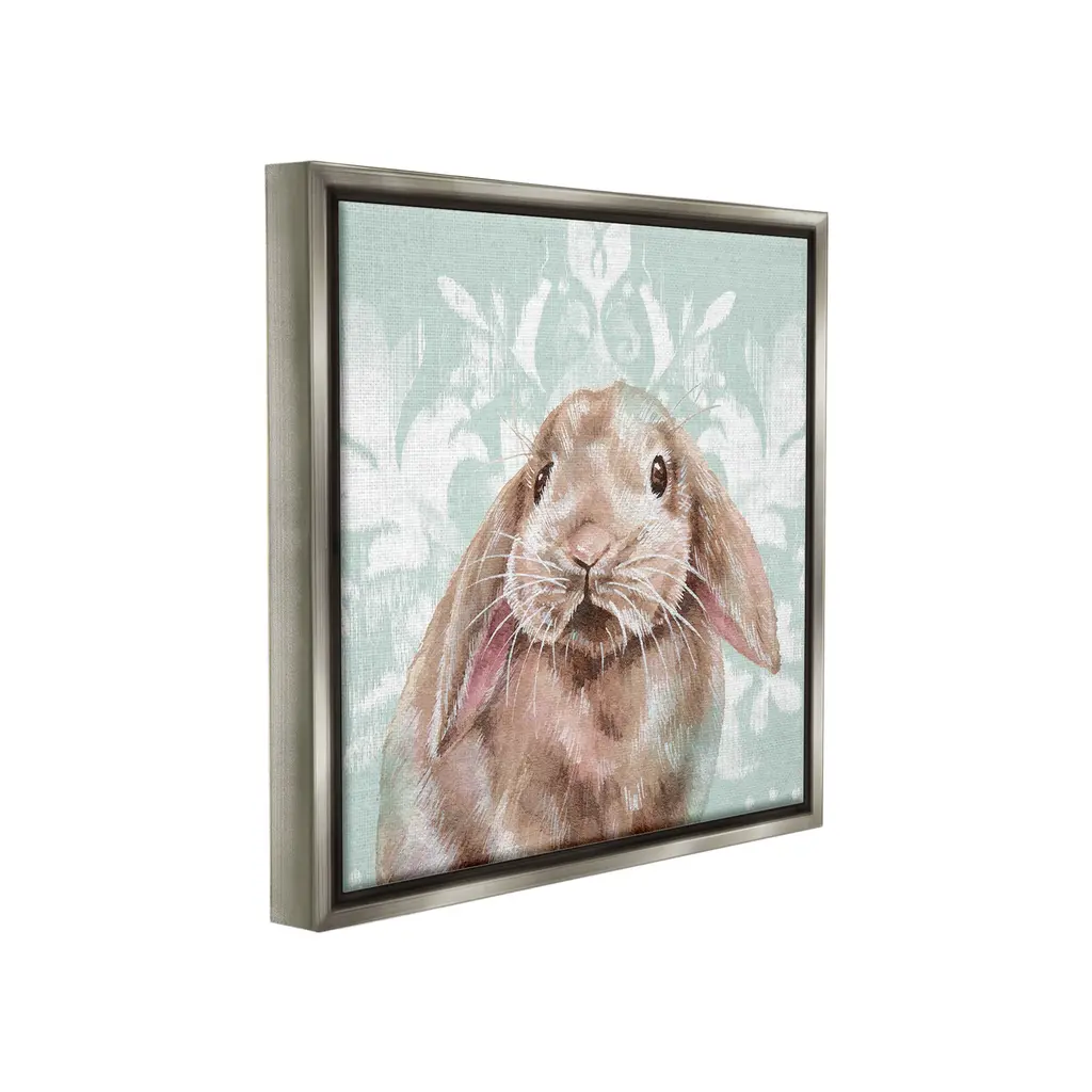 Elevate your home or office to the next level with Stupell Framed Floating Canvas Wall Art. Our premium hand-stretched canvas is mounted securely into a sturdy lightweight frame. The museum-style gap between the wrapped canvas and the box frame gives the illusion of floating artwork. Stupell Wall Art is made in the USA.Features: Dimensions: 18 x 1.7 x 18 Frame, 17 x 1.5 x 17 Canvas ArtFloating Frame Canvas Products are available in sizes 18"x18" and 25"x25". All Floating Frame Canvas Products have a 1.7" Depth.Wall Art is Ready to Hang with Hardware Free Hanging. No Installation required. For Easy Set Up Lean or Layer Artwork on Shelf or Against Wall. Artwork is Permently Fixed into the Frame.Our elevated 1.7" Thick Floating Frame is the perfect complement to our canvas style Wall Art. We use only the highest quality inks in house with industry leading printing solutions. Canvas is hand stretched over a durable wood foundation and then mounted securly into a Modern Box Frame. Made in the USA.Artwork Relates To: Animal, Hare, Mammal, Pet, Rabbit, Bunny, Flower, Plant, Floral, Rustic, Country, PatternDesign by Courtney Morgenstern