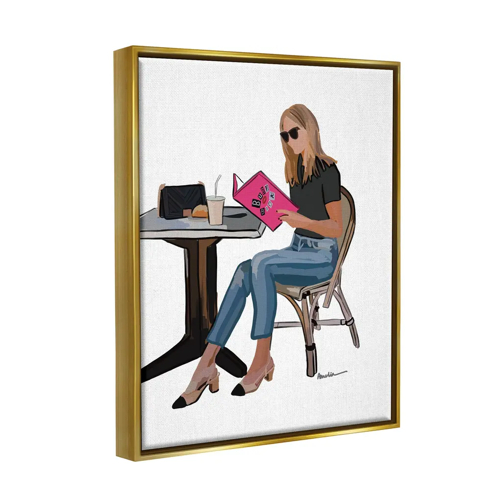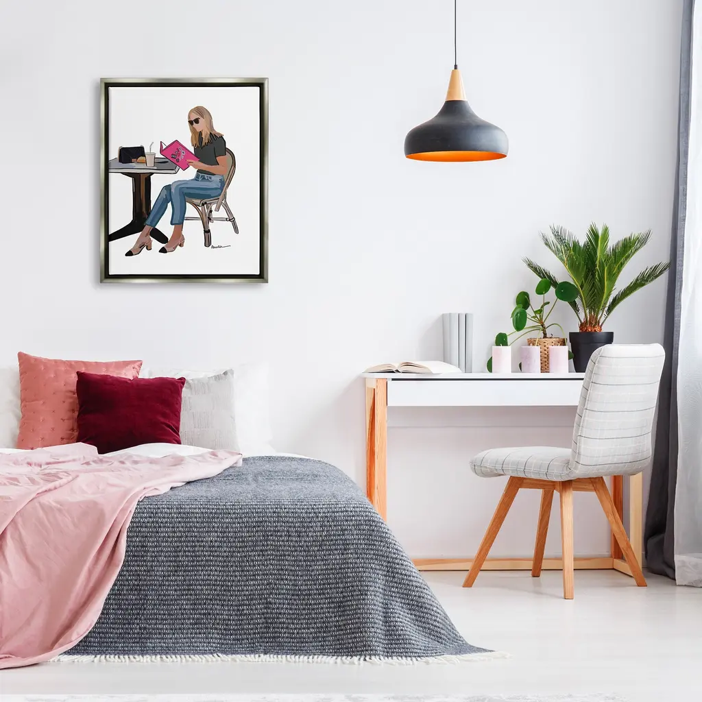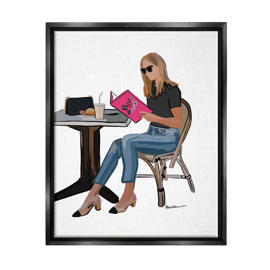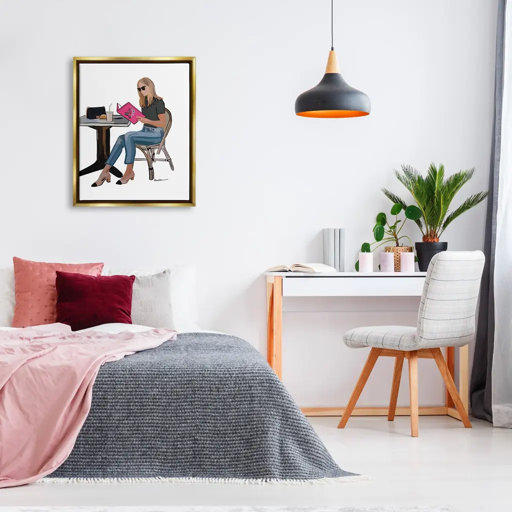 Elevate your home or office to the next level with Stupell Framed Floating Canvas Wall Art. Our premium hand-stretched canvas is mounted securely into a sturdy lightweight frame. The museum-style gap between the wrapped canvas and the box frame gives the illusion of floating artwork. Stupell Wall Art is made in the USA.Features: Dimensions: 17 x 1.7 x 21 Frame, 16 x 1.5 x 20 Canvas ArtFloating Frame Sizes Include Standard: 17 x 1.7 x 21 Oversized: 25 x 1.7 x 31Wall Art is Ready to Hang - No Installation or Hardware Needed. For Easy Set Up Lean or Layer Artwork on Shelf or Against Wall.Our elevated 1.7" Thick Floating Frame is the perfect complement to our canvas style Wall Art. We use only the highest quality inks in house with industry leading printing solutions. Canvas is hand stretched over a durable wood foundation and then mounted securly into a Modern Box Frame. Made in the USA.Artwork Relates To: Person, Sitting, Female, Woman, Desk, High Heel, Fashion, Glam, MovieDesign by Amelia Noyes