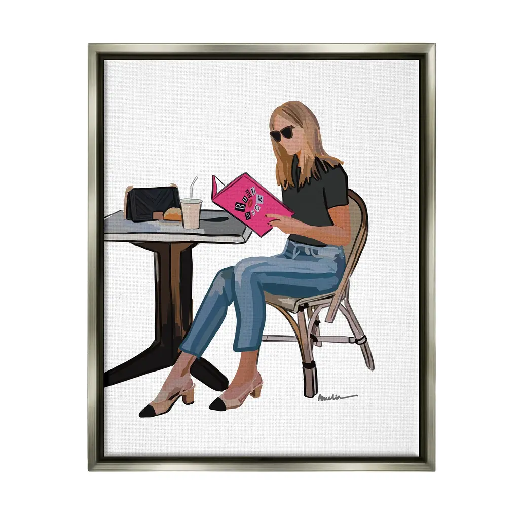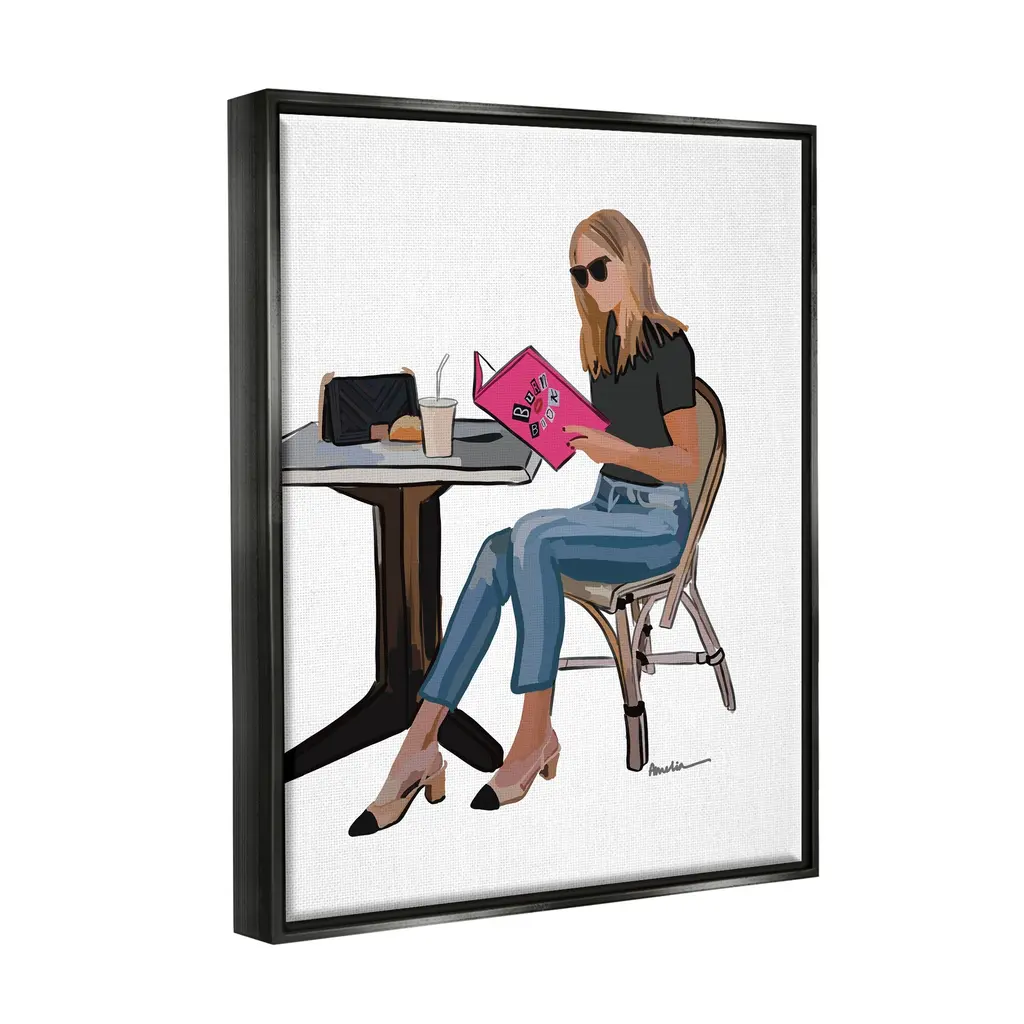 Elevate your home or office to the next level with Stupell Framed Floating Canvas Wall Art. Our premium hand-stretched canvas is mounted securely into a sturdy lightweight frame. The museum-style gap between the wrapped canvas and the box frame gives the illusion of floating artwork. Stupell Wall Art is made in the USA.Features: Dimensions: 17 x 1.7 x 21 Frame, 16 x 1.5 x 20 Canvas ArtFloating Frame Sizes Include Standard: 17 x 1.7 x 21 Oversized: 25 x 1.7 x 31Wall Art is Ready to Hang - No Installation or Hardware Needed. For Easy Set Up Lean or Layer Artwork on Shelf or Against Wall.Our elevated 1.7" Thick Floating Frame is the perfect complement to our canvas style Wall Art. We use only the highest quality inks in house with industry leading printing solutions. Canvas is hand stretched over a durable wood foundation and then mounted securly into a Modern Box Frame. Made in the USA.Artwork Relates To: Person, Sitting, Female, Woman, Desk, High Heel, Fashion, Glam, MovieDesign by Amelia Noyes