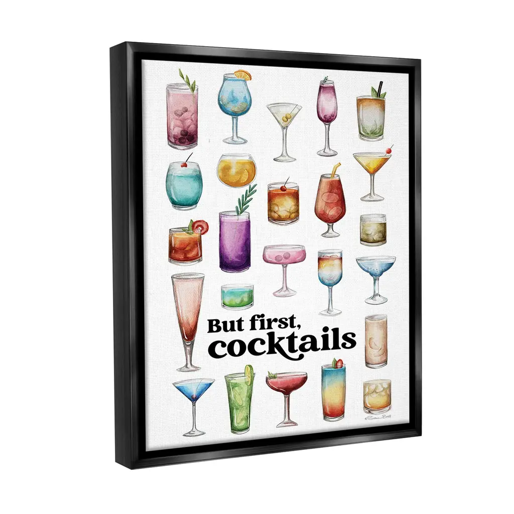 Stupell But First Cocktails Framed Floater Canvas Wall Art Design By Susan Ball - 17 X 21 - Black