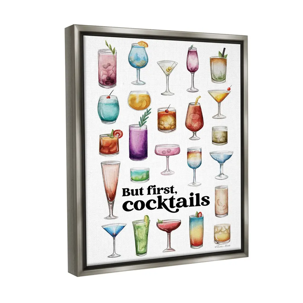 Stupell But First Cocktails Framed Floater Canvas Wall Art Design By Susan Ball - 25 X 31 - Grey