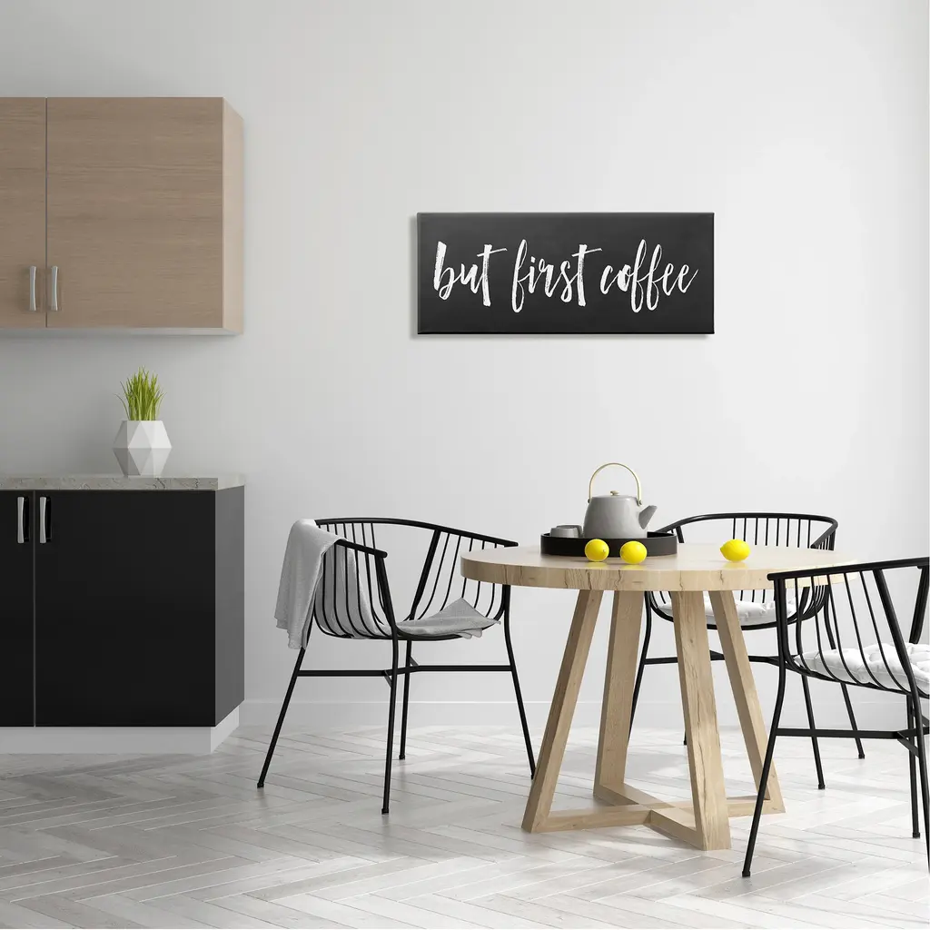 Stupell But First Coffee Calligraphy Script Kitchen Phrase Canvas Wall Art, Design By Lettered And Lined - 30 X 13