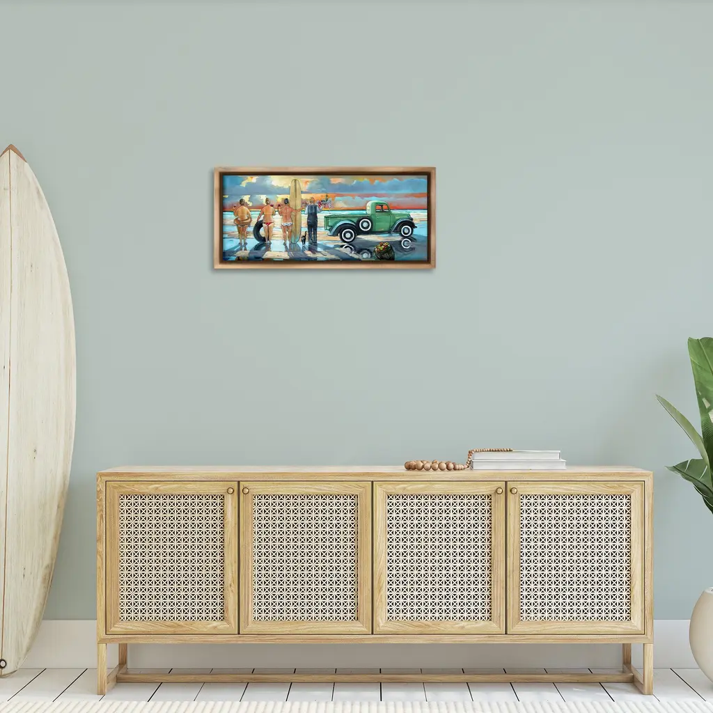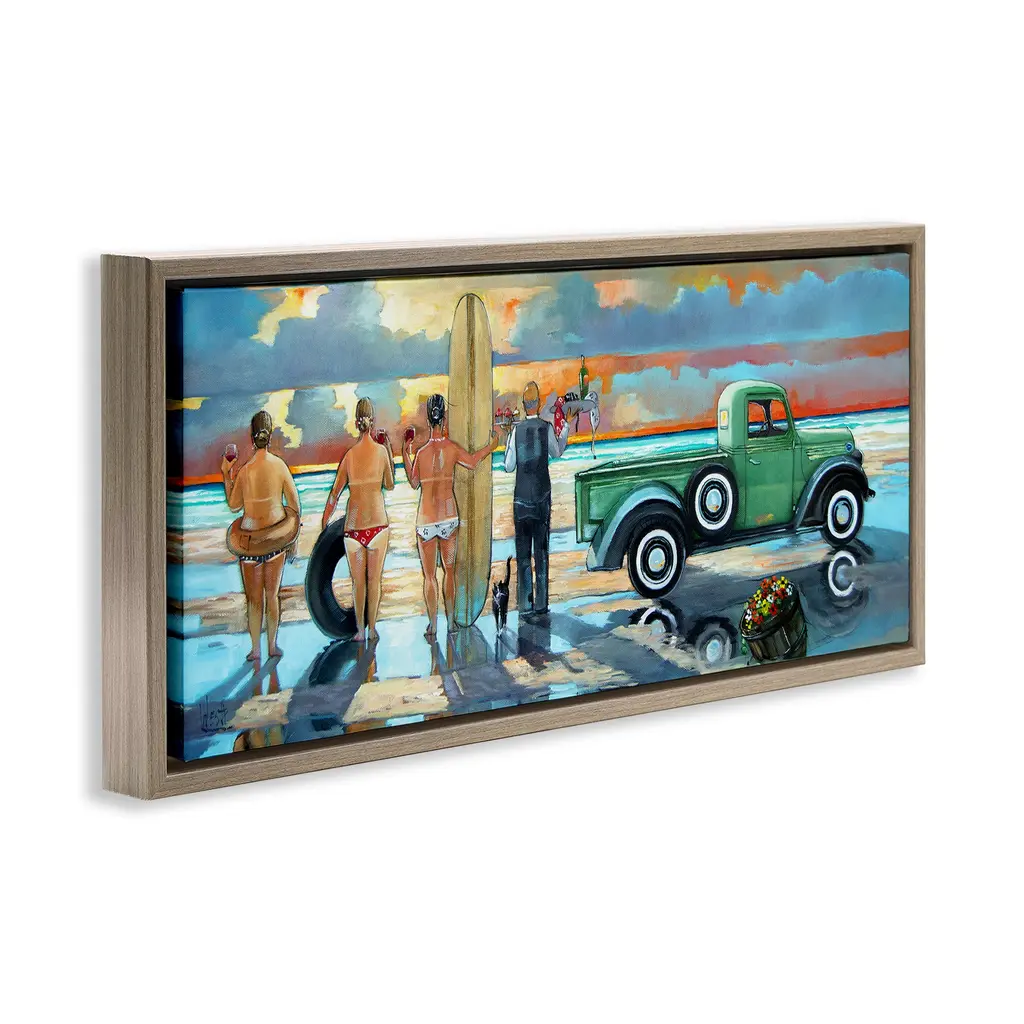 Elevate your home or office to the next level with Stupell Framed Floating Canvas Wall Art. Our premium hand-stretched canvas is mounted securely into a sturdy lightweight frame. The museum-style gap between the wrapped canvas and the box frame gives the illusion of floating artwork. Stupell Wall Art is made in the USA.Features: Dimensions: 25 x 1.7 x 11 Frame, 24 x 1.5 x 10 Canvas ArtFloating Frame Canvas Products are available in sizes 25"x11" and 31"x14". All Floating Frame Canvas Products have a 1.7" Depth.Wall Art is Ready to Hang with Hardware Free Hanging. No Installation required. For Easy Set Up Lean or Layer Artwork on Shelf or Against Wall. Artwork is Permently Fixed into the Frame.Our elevated 1.7" Thick Floating Frame is the perfect complement to our canvas style Wall Art. We use only the highest quality inks in house with industry leading printing solutions. Canvas is hand stretched over a durable wood foundation and then mounted securly into a Modern Box Frame. Made in the USA.Artwork Relates To: Painting, Pickup Truck, Transportation, Truck, Vehicle, Person, Women, Beach, Surfboard, Coast, Reflection, Sky, ButlerDesign by Ronald West