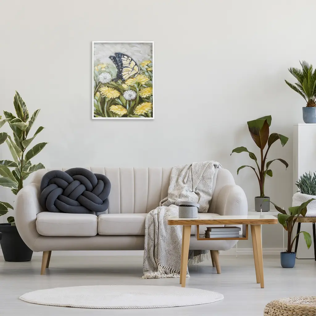 Add dimension to any room with our textured Framed Giclee Artwork. Our framed artwork is securely mounted into a 1.5-inch thick wood grain frame and ready to hang. Frames are available in three alluring styles: black, gray farmhouse and white. In addition, you should check out our oversized options if you want a statement piece. Stupell Wall Art is made in the USA.Features: Dimensions: 11 x 1.5 x 14 FramedFramed Giclee Products are available in the sizes 11"x14", 16"x20" or 24"x30". All Framed Giclee Products have a 1.5" Depth. Wall Art is Ready to Hang with Hardware Free Hanging. No installation required. For Easy Set Up Lean or Layer Artwork on Shelf or Against Wall.Our giclée prints are carefully mounted on a durable MDF backing, and then perfectly finished in a 1.5 inch thick woodgrain frame. Mounted frame colors include black, gray farmhouse and white. Made In USA.Artwork Relates To: Painting, Flower, Plant, Petal, Daisy, Animal, Insect, Invertebrate, Butterfly, Modern, Floral, Pattern, BotanicalDesign by Sara G. Designs