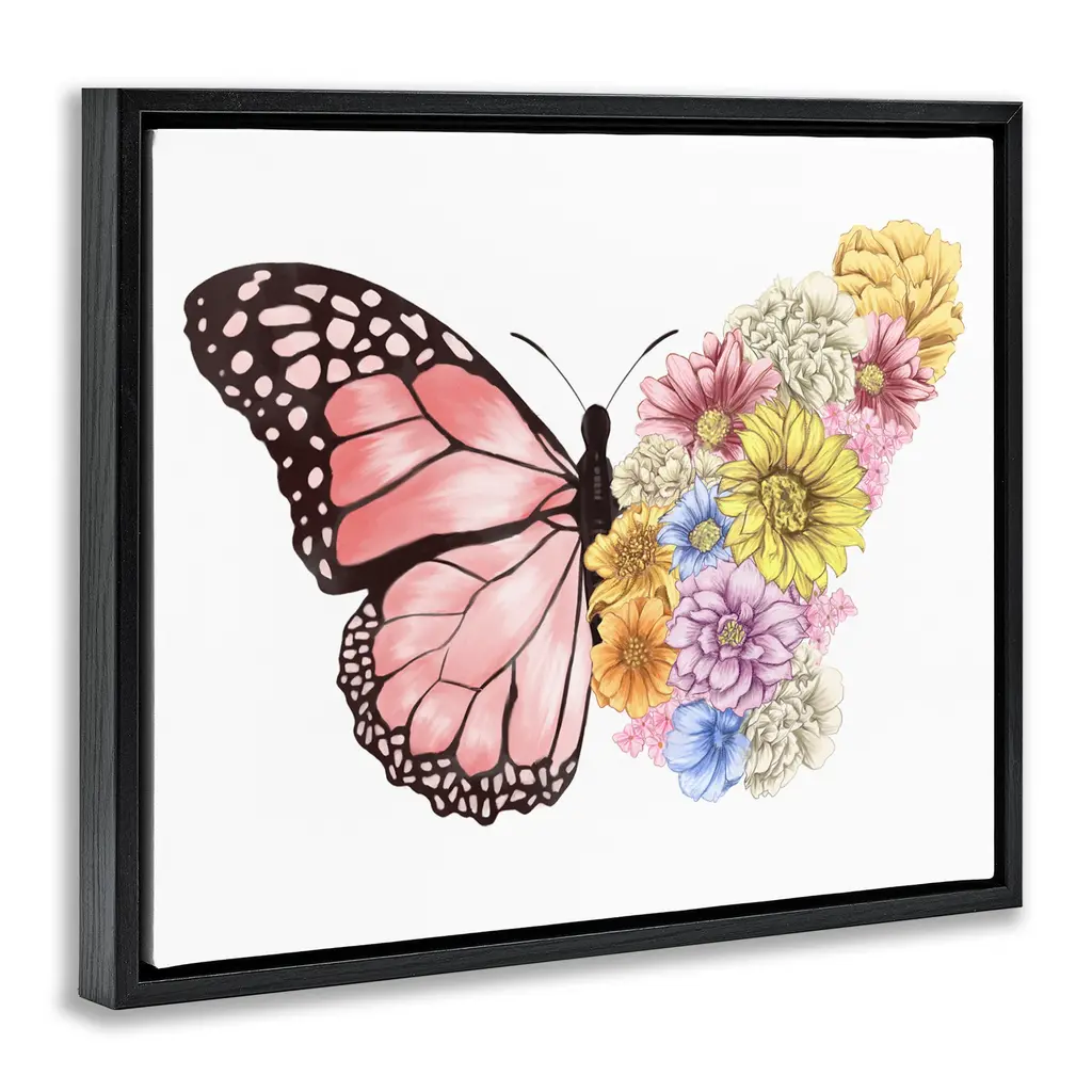 Elevate your home or office to the next level with Stupell Framed Floating Canvas Wall Art. Our premium hand-stretched canvas is mounted securely into a sturdy lightweight frame. The museum-style gap between the wrapped canvas and the box frame gives the illusion of floating artwork. Stupell Wall Art is made in the USA.Features: Dimensions: 21 x 1.7 x 17 Frame, 20 x 1.5 x 16 Canvas ArtFloating Frame Canvas Products are available in sizes 21"x17" and 31"x25". All Floating Frame Canvas Products have a 1.7" Depth.Wall Art is Ready to Hang with Hardware Free Hanging. No Installation required. For Easy Set Up Lean or Layer Artwork on Shelf or Against Wall. Artwork is Permently Fixed into the Frame.Our elevated 1.7" Thick Floating Frame is the perfect complement to our canvas style Wall Art. We use only the highest quality inks in house with industry leading printing solutions. Canvas is hand stretched over a durable wood foundation and then mounted securly into a Modern Box Frame. Made in the USA.Artwork Relates To: Animal, Insect, Bug, Butterfly, Flower, Floral, Pattern, CottageDesign by Ziwei Li