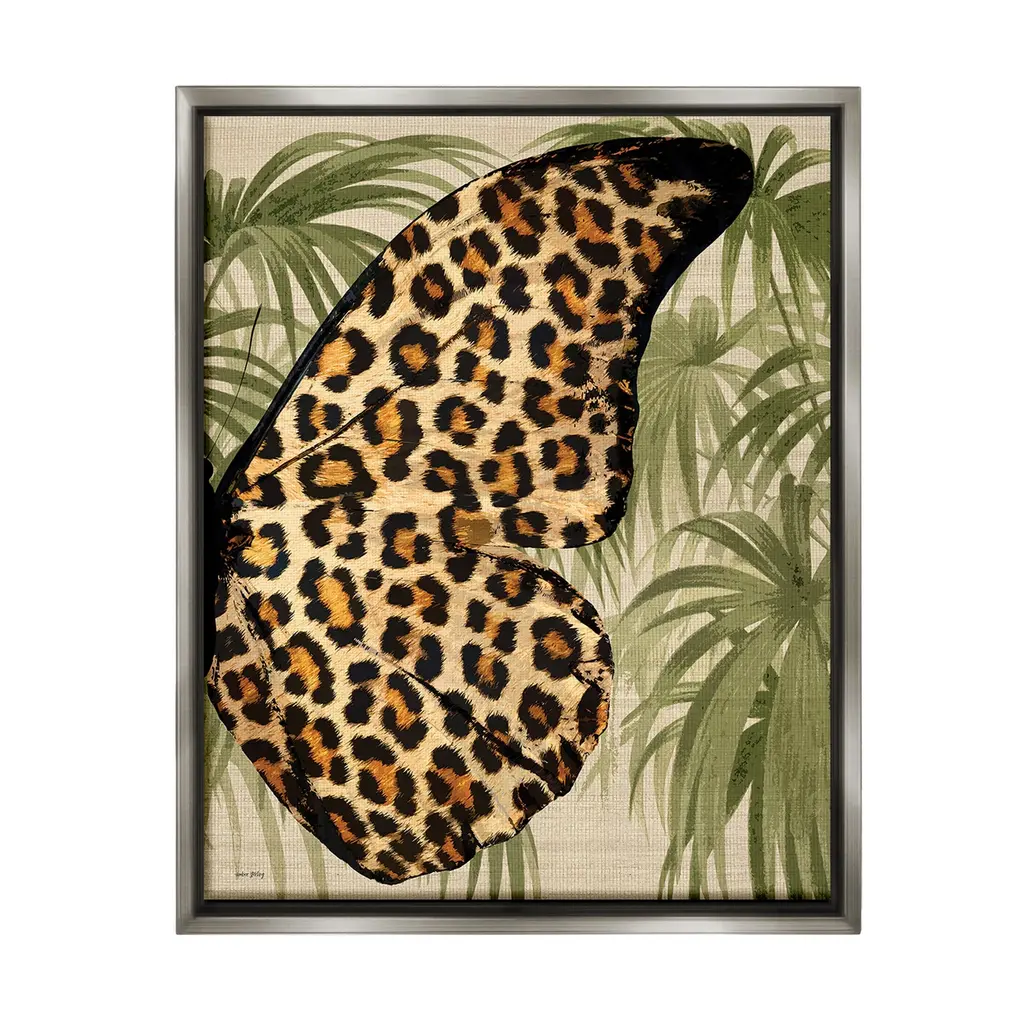 Elevate your home or office to the next level with Stupell Framed Floating Canvas Wall Art. Our premium hand-stretched canvas is mounted securely into a sturdy lightweight frame. The museum-style gap between the wrapped canvas and the box frame gives the illusion of floating artwork. Stupell Wall Art is made in the USA.Features: Dimensions: 17 x 1.7 x 21 Frame, 16 x 1.5 x 20 Canvas ArtFloating Frame Canvas Products are available in sizes 17"x21" and 25"x31". All Floating Frame Canvas Products have a 1.7" Depth.Wall Art is Ready to Hang with Hardware Free Hanging. No Installation required. For Easy Set Up Lean or Layer Artwork on Shelf or Against Wall. Artwork is Permently Fixed into the Frame.Our elevated 1.7" Thick Floating Frame is the perfect complement to our canvas style Wall Art. We use only the highest quality inks in house with industry leading printing solutions. Canvas is hand stretched over a durable wood foundation and then mounted securly into a Modern Box Frame. Made in the USA.Artwork Relates To: Jungle, Nature, Plant, Vegetation, Rainforest, Animal, Wildlife, Leaf, Floral, Pattern, Butterfly, Wing, Cheetah PatternDesign by Amber Sterling