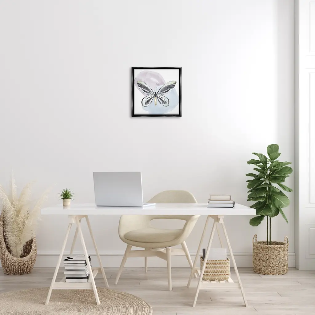Elevate your home or office to the next level with Stupell Framed Floating Canvas Wall Art. Our premium hand-stretched canvas is mounted securely into a sturdy lightweight frame. The museum-style gap between the wrapped canvas and the box frame gives the illusion of floating artwork. Stupell Wall Art is made in the USA.Features: Dimensions: 18 x 1.7 x 18 Frame, 17 x 1.5 x 17 Canvas ArtFloating Frame Canvas Products are available in sizes 18"x18" and 25"x25". All Floating Frame Canvas Products have a 1.7" Depth.Wall Art is Ready to Hang with Hardware Free Hanging. No Installation required. For Easy Set Up Lean or Layer Artwork on Shelf or Against Wall. Artwork is Permently Fixed into the Frame.Our elevated 1.7" Thick Floating Frame is the perfect complement to our canvas style Wall Art. We use only the highest quality inks in house with industry leading printing solutions. Canvas is hand stretched over a durable wood foundation and then mounted securly into a Modern Box Frame. Made in the USA.Artwork Relates To: Insect, Bug, Butterfly, Abstract, Subtle, Shapes, DragonflyDesign by Kim Allen
