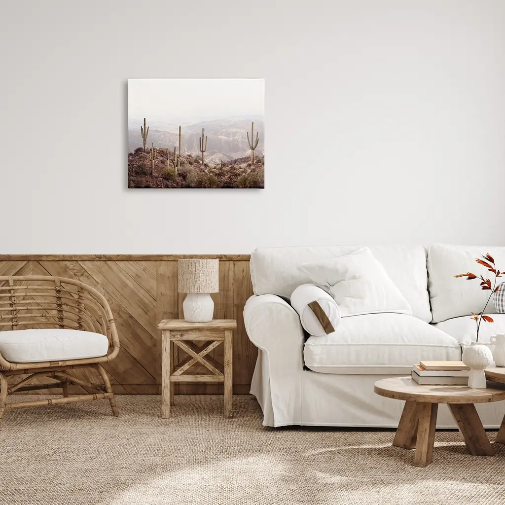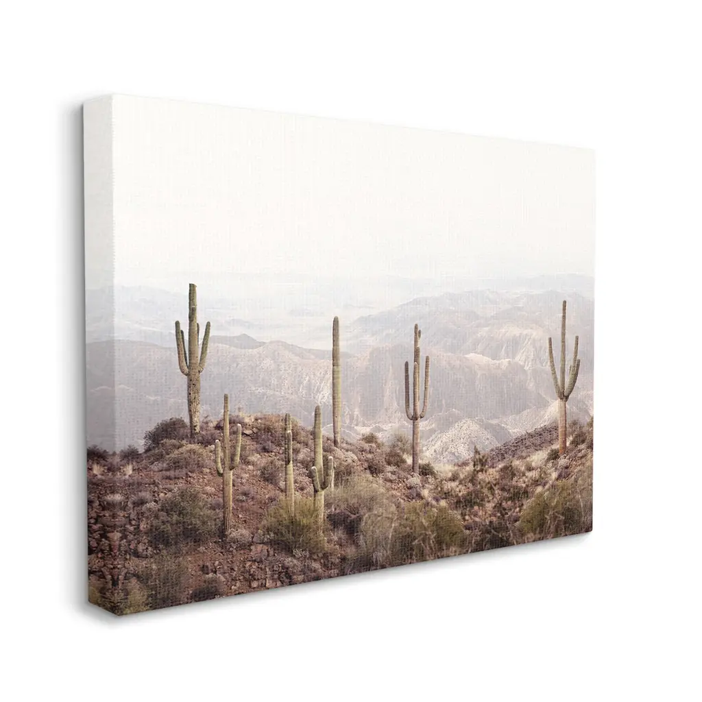 We create our stretched canvas to the highest standards. Using only the highest quality inks and canvas on Mimaki printers, we hand-cut and stretch each piece over a 1.5-inch thick wooden frame for hanging. As a result, the art comes ready to hang on the sturdy ledge with no installation required. Stupell Wall Art is made in the USA.Features: Dimensions: 20 x 1.5 x 16 InchesStretched Canvas Sizes Include Standard: 20 x 1.5 x 16 Large: 30 x 1.5 x 20 X-Large: 40 x 1.5 x 30 Oversized: 48 x 1.5 x 36Wall Art is Ready to Hang with Hardware Free Hanging. No installation required. For Easy Set Up Lean or Layer Artwork on Shelf or Against Wall.Our stretched canvas is created with the highest standards. We use only the highest quality inks and canvas on our in house Mimaki printers, and then hand cut and stretch each piece over a 1.5 inch thick wooden frame for hanging. Made In USA.Artwork Relates To: Cactus, Plant, Desert, Flower, Botanical, Landscape, MountainDesign by Sisi and Seb