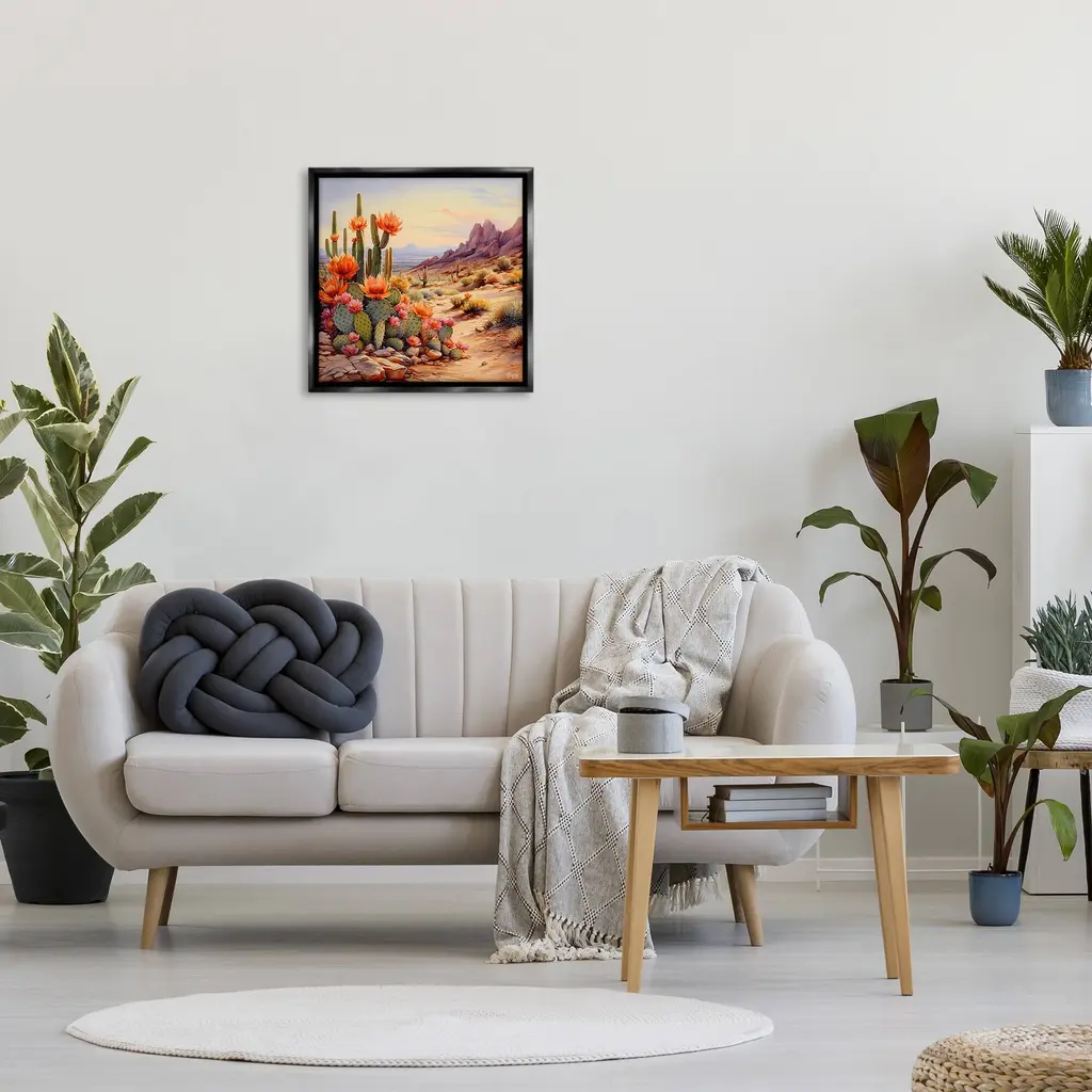Elevate your home or office to the next level with Stupell Framed Floating Canvas Wall Art. Our premium hand-stretched canvas is mounted securely into a sturdy lightweight frame. The museum-style gap between the wrapped canvas and the box frame gives the illusion of floating artwork. Stupell Wall Art is made in the USA.Features: Dimensions: 18 x 1.7 x 18 Frame, 17 x 1.5 x 17 Canvas ArtFloating Frame Canvas Products are available in sizes 18"x18" and 25"x25". All Floating Frame Canvas Products have a 1.7" Depth.Wall Art is Ready to Hang with Hardware Free Hanging. No Installation required. For Easy Set Up Lean or Layer Artwork on Shelf or Against Wall. Artwork is Permently Fixed into the Frame.Our elevated 1.7" Thick Floating Frame is the perfect complement to our canvas style Wall Art. We use only the highest quality inks in house with industry leading printing solutions. Canvas is hand stretched over a durable wood foundation and then mounted securly into a Modern Box Frame. Made in the USA.Artwork Relates To: Road, Nature, Sky, Scenery, Landscape, Desert, Cactus, Mountain, Vegetation, Botanical, Plant, Canyon, Plateau, FlowerDesign by RB