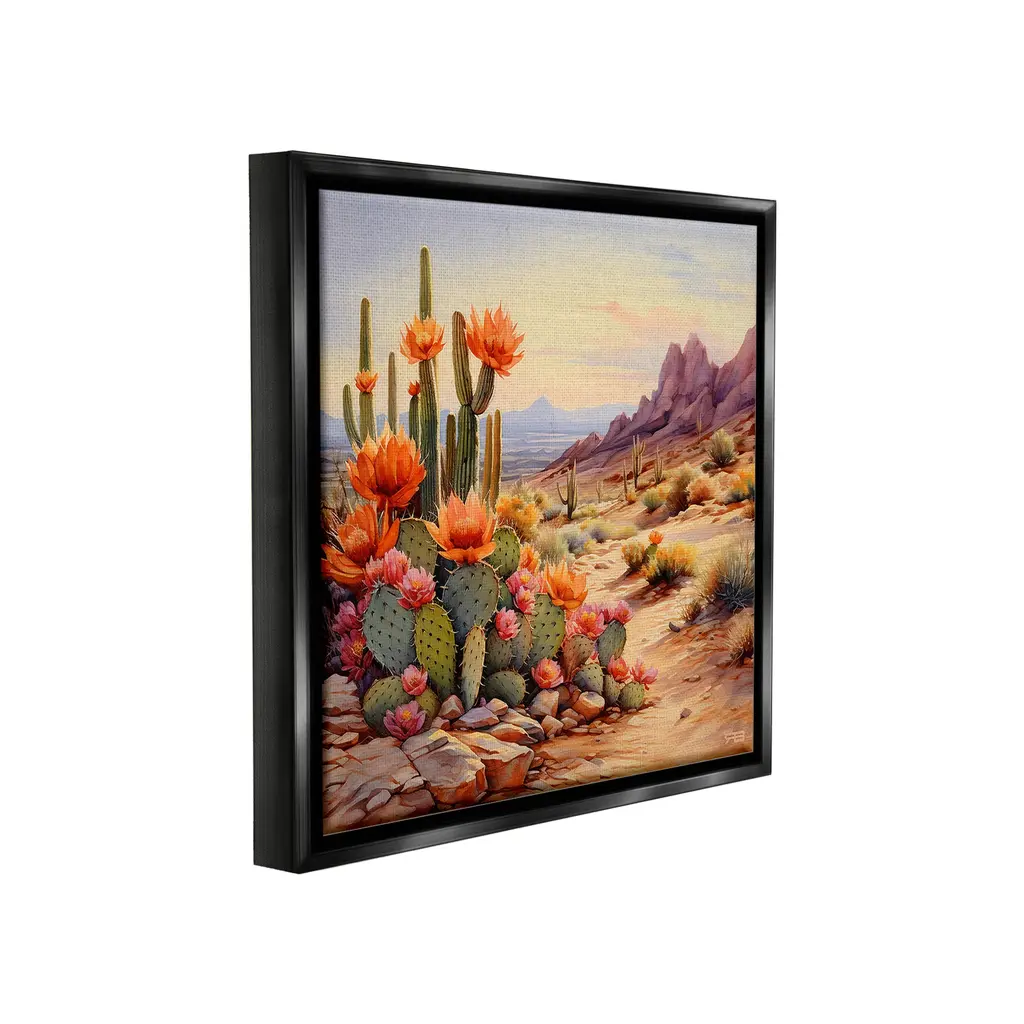 Stupell Cactus Flower Landscape Framed Floater Canvas Wall Art Design By Rb - 25 X 25 - Black