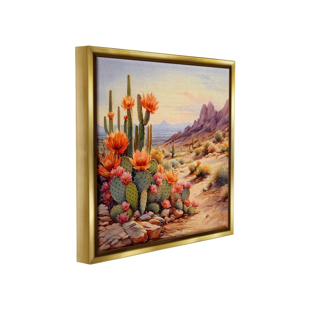 Stupell Cactus Flower Landscape Framed Floater Canvas Wall Art Design By Rb - 25 X 25 - Gold