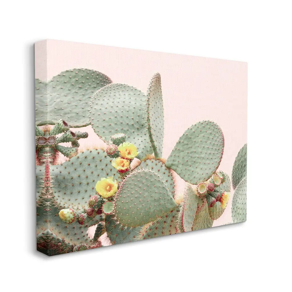 We create our stretched canvas to the highest standards. Using only the highest quality inks and canvas on Mimaki printers, we hand-cut and stretch each piece over a 1.5-inch thick wooden frame for hanging. As a result, the art comes ready to hang on the sturdy ledge with no installation required. Stupell Wall Art is made in the USA.Features: Dimensions: 20 x 1.5 x 16 InchesStretched Canvas Sizes Include Standard: 20 x 1.5 x 16 Large: 30 x 1.5 x 20 X-Large: 40 x 1.5 x 30 Oversized: 48 x 1.5 x 36Wall Art is Ready to Hang with Hardware Free Hanging. No installation required. For Easy Set Up Lean or Layer Artwork on Shelf or Against Wall.Our stretched canvas is created with the highest standards. We use only the highest quality inks and canvas on our in house Mimaki printers, and then hand cut and stretch each piece over a 1.5 inch thick wooden frame for hanging. Made In USA.Artwork Relates To: Cactus, Plant, Tropical, Desert, Pink, Flower, BotanicalDesign by Sisi and Seb