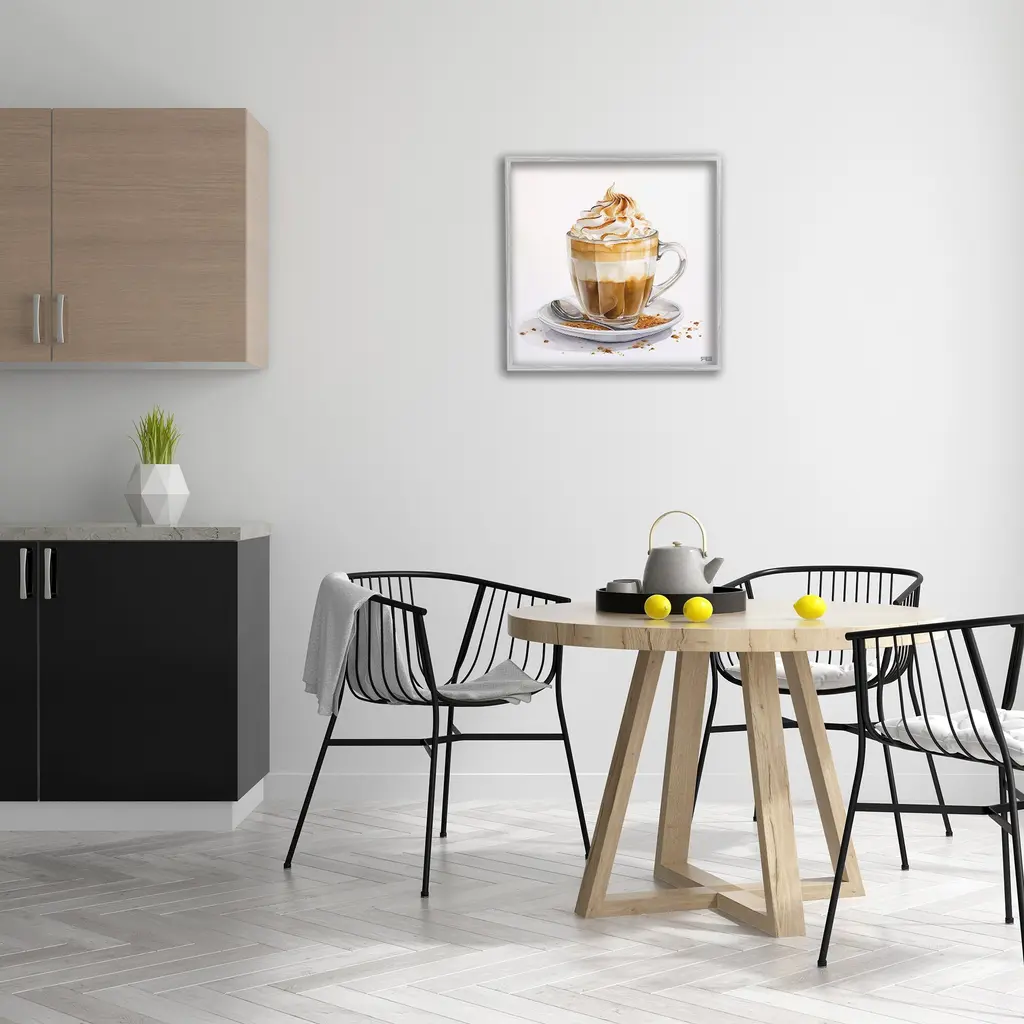 Add dimension to any room with our textured Framed Giclee Artwork. Our framed artwork is securely mounted into a 1.5-inch thick wood grain frame and ready to hang. Frames are available in three alluring styles: black, gray farmhouse and white. In addition, you should check out our oversized options if you want a statement piece. Stupell Wall Art is made in the USA.Features: Dimensions: 12 x 1.5 x 12 FramedFramed Giclee Product Sizes Include 12"x12", 17"x17", and 24"x24". Framed Giclee Products have a 1.5" Depth. Wall Art is Ready to Hang with Hardware Free Hanging. No installation required. For Easy Set Up Lean or Layer Artwork on Shelf or Against Wall.Our giclée prints are carefully mounted on a durable MDF backing, and then perfectly finished in a 1.5 inch thick woodgrain frame. Mounted frame colors include black, gray farmhouse and white. Made In USA.Artwork Relates To: Cup, Coffee, Latte, Glass, Straw, Cafe, Espresso, Beverage, Brunch, KitchenDesign by RB