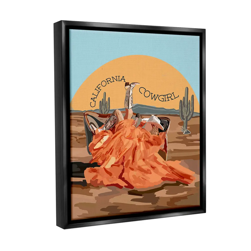 Elevate your home or office to the next level with Stupell Framed Floating Canvas Wall Art. Our premium hand-stretched canvas is mounted securely into a sturdy lightweight frame. The museum-style gap between the wrapped canvas and the box frame gives the illusion of floating artwork. Stupell Wall Art is made in the USA.Features: Dimensions: 17 x 1.7 x 21 Frame, 16 x 1.5 x 20 Canvas ArtFloating Frame Canvas Products are available in sizes 17"x21" and 25"x31". All Floating Frame Canvas Products have a 1.7" Depth.Wall Art is Ready to Hang with Hardware Free Hanging. No Installation required. For Easy Set Up Lean or Layer Artwork on Shelf or Against Wall. Artwork is Permently Fixed into the Frame.Our elevated 1.7" Thick Floating Frame is the perfect complement to our canvas style Wall Art. We use only the highest quality inks in house with industry leading printing solutions. Canvas is hand stretched over a durable wood foundation and then mounted securly into a Modern Box Frame. Made in the USA.Artwork Relates To: Equestrian, Rodeo, Country, Southwestern, Cowgirl, Cowboy Boot, Nature, Landscape, Desert, Cactus, Abstract, California CowgirlDesign by Amelia Noyes