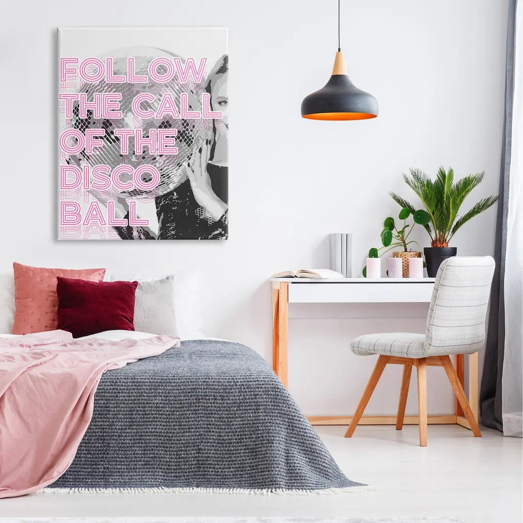 We create our stretched canvas to the highest standards. Using only the highest quality inks and canvas on Mimaki printers, we hand-cut and stretch each piece over a 1.5-inch thick wooden frame for hanging. As a result, the art comes ready to hang on the sturdy ledge with no installation required. Stupell Wall Art is made in the USA.Features: Dimensions: 16 x 1.5 x 20 InchesStretched Canvas Sizes Include Standard: 16 x 1.5 x 20 Large: 20 x 1.5 x 30 X-Large: 30 x 1.5 x 40 Oversized: 36 x 1.5 x 48Wall Art is Ready to Hang - No Installation or Hardware Needed. For Easy Set Up Lean or Layer Artwork on Shelf or Against Wall.Our stretched canvas is created with the highest standards. We use only the highest quality inks and canvas on our in house Mimaki printers, and then hand cut and stretch each piece over a 1.5 inch thick wooden frame for hanging. Made In USA.Artwork Relates To: Disco Ball, Retro, Bold, Person, Woman, Follow The Call Of The Disco BallDesign by Lil' Rue