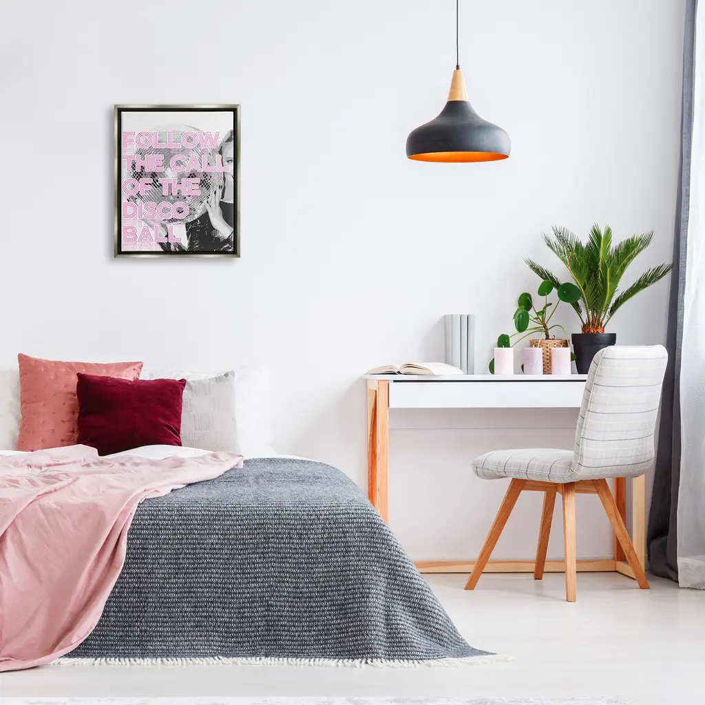 Elevate your home or office to the next level with Stupell Framed Floating Canvas Wall Art. Our premium hand-stretched canvas is mounted securely into a sturdy lightweight frame. The museum-style gap between the wrapped canvas and the box frame gives the illusion of floating artwork. Stupell Wall Art is made in the USA.Features: Dimensions: 17 x 1.7 x 21 Frame, 16 x 1.5 x 20 Canvas ArtFloating Frame Sizes Include Standard: 17 x 1.7 x 21 Oversized: 25 x 1.7 x 31Wall Art is Ready to Hang - No Installation or Hardware Needed. For Easy Set Up Lean or Layer Artwork on Shelf or Against Wall.Our elevated 1.7" Thick Floating Frame is the perfect complement to our canvas style Wall Art. We use only the highest quality inks in house with industry leading printing solutions. Canvas is hand stretched over a durable wood foundation and then mounted securly into a Modern Box Frame. Made in the USA.Artwork Relates To: Disco Ball, Retro, Bold, Person, Woman, Follow The Call Of The Disco BallDesign by Lil' Rue