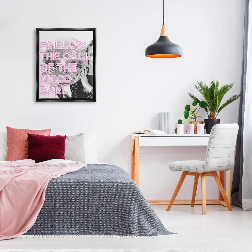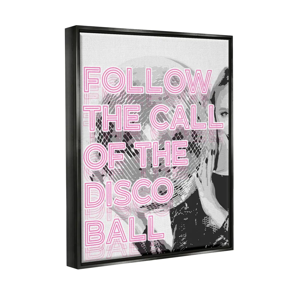 Elevate your home or office to the next level with Stupell Framed Floating Canvas Wall Art. Our premium hand-stretched canvas is mounted securely into a sturdy lightweight frame. The museum-style gap between the wrapped canvas and the box frame gives the illusion of floating artwork. Stupell Wall Art is made in the USA.Features: Dimensions: 17 x 1.7 x 21 Frame, 16 x 1.5 x 20 Canvas ArtFloating Frame Sizes Include Standard: 17 x 1.7 x 21 Oversized: 25 x 1.7 x 31Wall Art is Ready to Hang - No Installation or Hardware Needed. For Easy Set Up Lean or Layer Artwork on Shelf or Against Wall.Our elevated 1.7" Thick Floating Frame is the perfect complement to our canvas style Wall Art. We use only the highest quality inks in house with industry leading printing solutions. Canvas is hand stretched over a durable wood foundation and then mounted securly into a Modern Box Frame. Made in the USA.Artwork Relates To: Disco Ball, Retro, Bold, Person, Woman, Follow The Call Of The Disco BallDesign by Lil' Rue