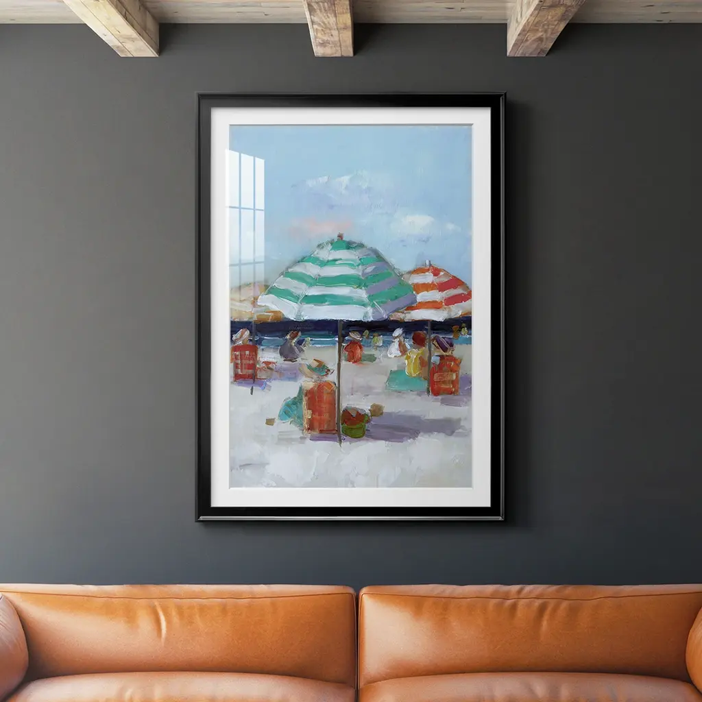 Stupell Calm Beach Umbrella People Relaxing Ocean Shoreline Framed Wall Art - Multi-Color - 11 X 14 - Grey