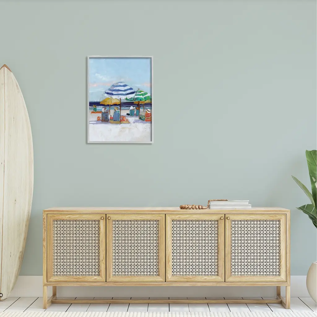 Stupell Calm Beach Umbrella People Relaxing Ocean Shoreline Framed Wall Art - Multi-Color - 24 X 30 - Grey