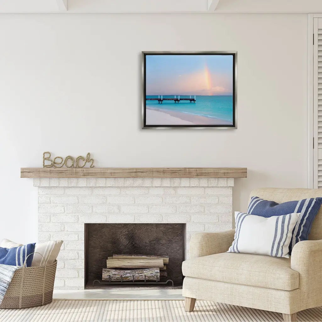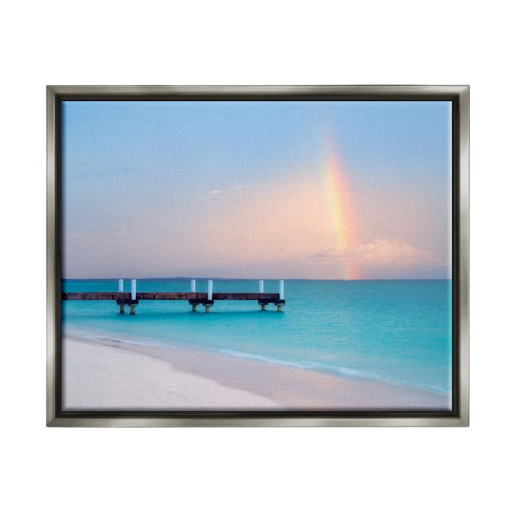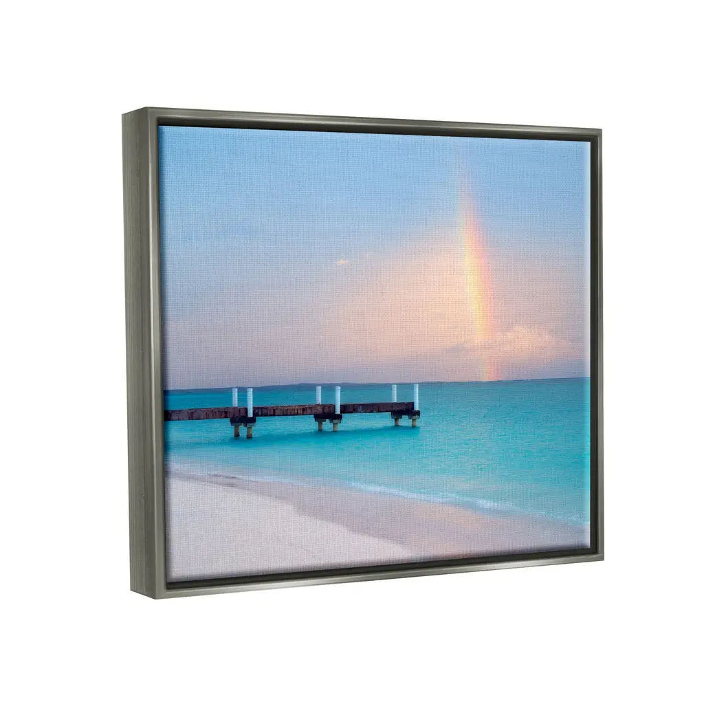 Elevate your home or office to the next level with Stupell Framed Floating Canvas Wall Art. Our premium hand-stretched canvas is mounted securely into a sturdy lightweight frame. The museum-style gap between the wrapped canvas and the box frame gives the illusion of floating artwork. Stupell Wall Art is made in the USA.Features: Dimensions: 21 x 1.7 x 17 Frame, 20 x 1.5 x 16 Canvas ArtFloating Frame Sizes Include Standard: 21 x 1.7 x 17 Oversized: 31 x 1.7 x 25Wall Art is Ready to Hang - No Installation or Hardware Needed. For Easy Set Up Lean or Layer Artwork on Shelf or Against Wall.Our elevated 1.7" Thick Floating Frame is the perfect complement to our canvas style Wall Art. We use only the highest quality inks in house with industry leading printing solutions. Canvas is hand stretched over a durable wood foundation and then mounted securly into a Modern Box Frame. Made in the USA.Artwork Relates To: Water, Waterfront, Sky, Scenery, Beach, Coast, Sea, Shoreline, Horizon, Landscape, RainbowDesign by Mindy Sommers