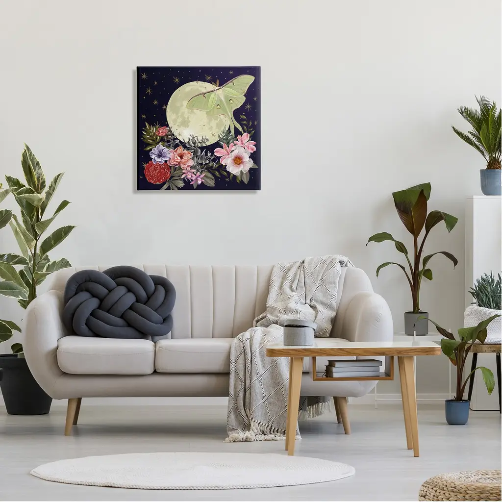 Stupell Calming Nighttime Luna Moth Flying Moon Flowers Canvas Wall Art, Design By Raquel Maciel - 24 X 24