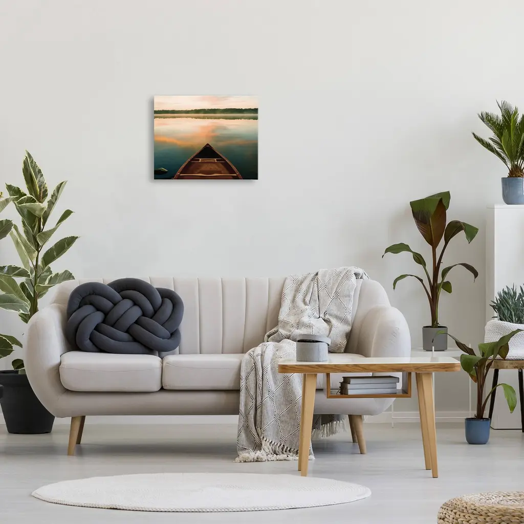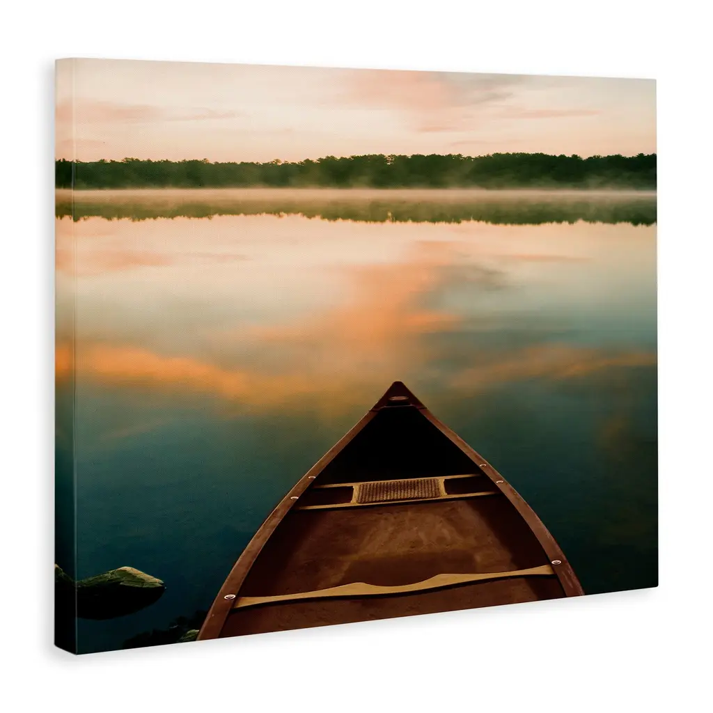 Stupell Canoe On Lake Warm Sunrise Water Reflection Canvas Wall Art - Orange - 20 X 16