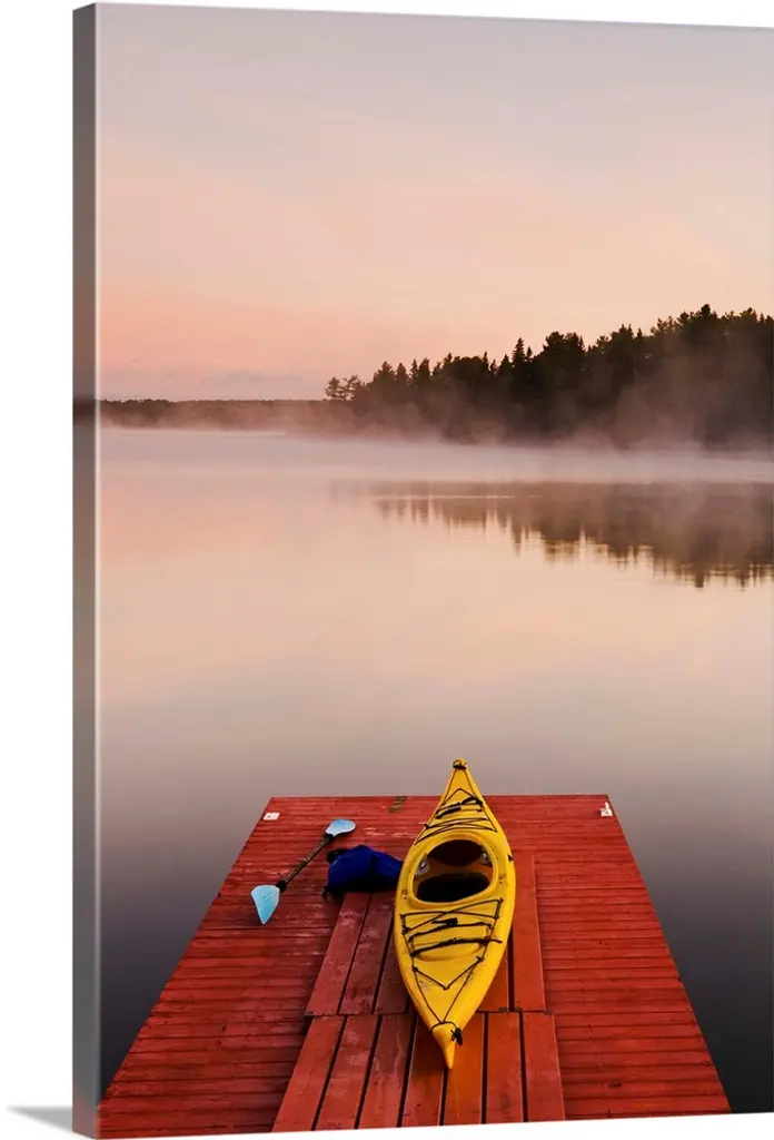 Stupell Canoe On Lake Warm Sunrise Water Reflection Canvas Wall Art - Orange - 30 X 24