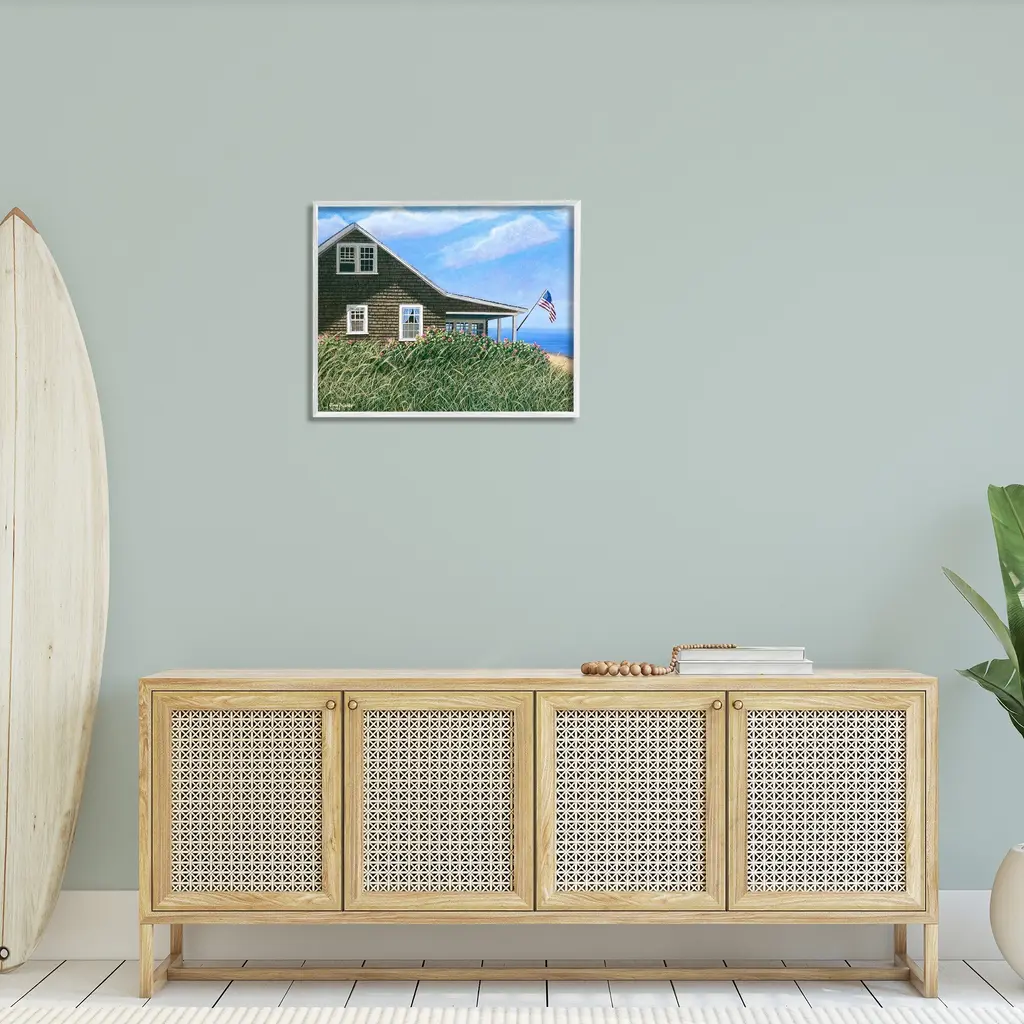 Add dimension to any room with our textured Framed Giclee Artwork. Our framed artwork is securely mounted into a 1.5-inch thick wood grain frame and ready to hang. Frames are available in three alluring styles: black, gray farmhouse and white. In addition, you should check out our oversized options if you want a statement piece. Stupell Wall Art is made in the USA.Features: Dimensions: 14 x 1.5 x 11 FramedFramed Giclee Products are available in the sizes 14"x11", 20"x16" or 30"x24". All Framed Giclee Products have a 1.5" Depth. Wall Art is Ready to Hang with Hardware Free Hanging. No installation required. For Easy Set Up Lean or Layer Artwork on Shelf or Against Wall.Our giclée prints are carefully mounted on a durable MDF backing, and then perfectly finished in a 1.5 inch thick woodgrain frame. Mounted frame colors include black, gray farmhouse and white. Made In USA.Artwork Relates To: House, Porch, Balcony, Hammock, Flag, American Flag, Ocean, Nautical, Beach, Coastal, Cape, BayDesign by Tom Mielko