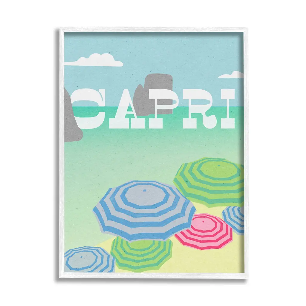 Our Framed Giclee Wall Art adds a touch of class to any space in your home or office. Frames are available in three alluring styles: black, gray farmhouse and white. Our textured artwork will add more depth and dimension to any space. Each piece is mounted with a 1.5 inch thick wood grain frame that is ready to hang! Looking for a statement piece? We have oversized artwork available.Features:Dimensions: 11 x 1.5 x 14 FramedFramed Giclee Sizes IncludeStandard: 11 x 1.5 x 14Large: 16 x 1.5 x 20Oversized: 24 x 1.5 x 30Wall Art is Ready to Hang - No Installation or Hardware Needed. For Easy Set Up Lean or Layer Artwork on Shelf or Against Wall.Our giclee prints are carefully mounted on a durable MDF backing, and then perfectly finished in a 1.5 inch thick woodgrain frame. Mounted frame colors include black, gray farmhouse and white. Made In USA.Artwork Relates To: Beach, Shore, Tropical, Vacation, Ocean, CapriDesign by Lil' Rue
