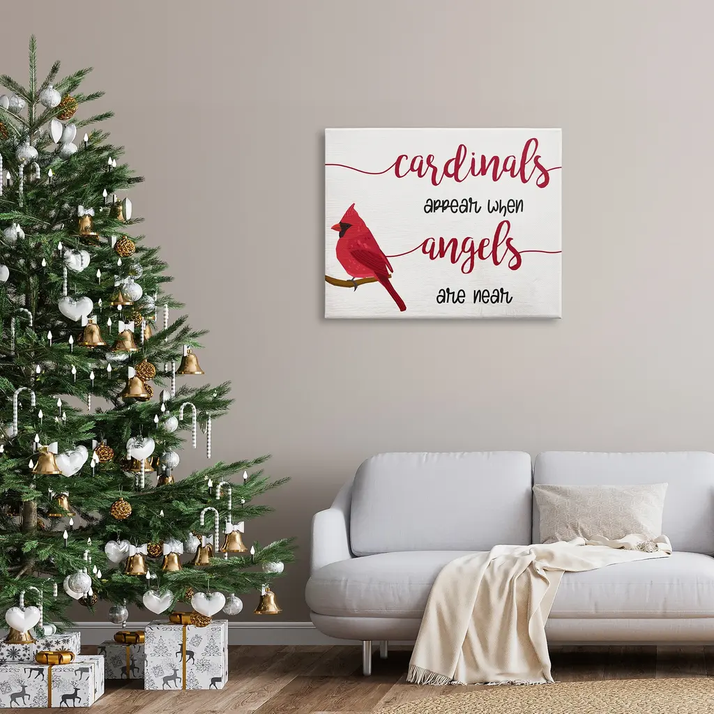 Stupell Cardinals Appear When Angels Are Near Sympathetic Phrase Canvas Wall Art - White - 40 X 30