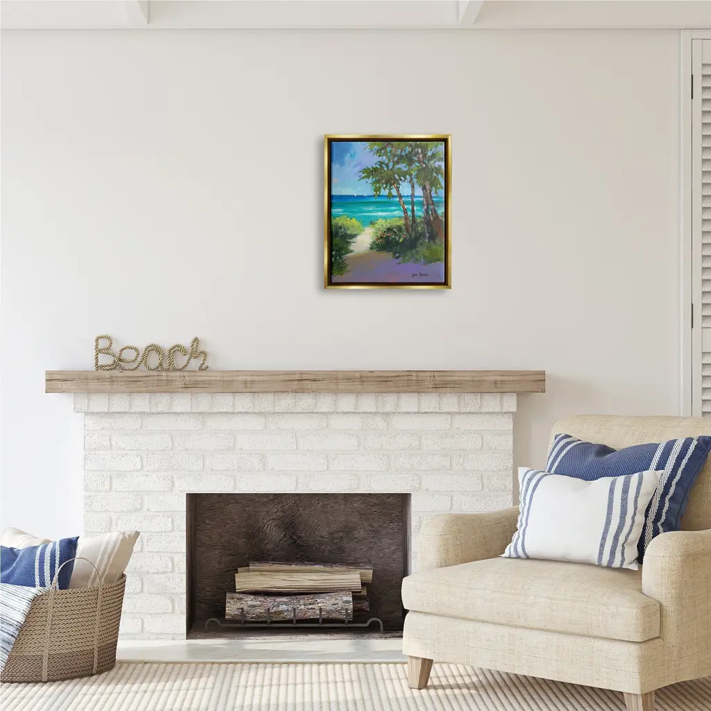 Elevate your home or office to the next level with Stupell Framed Floating Canvas Wall Art. Our premium hand-stretched canvas is mounted securely into a sturdy lightweight frame. The museum-style gap between the wrapped canvas and the box frame gives the illusion of floating artwork. Stupell Wall Art is made in the USA.Features: Dimensions: 17 x 1.7 x 21 Frame, 16 x 1.5 x 20 Canvas ArtFloating Frame Sizes Include Standard: 17 x 1.7 x 21 Oversized: 25 x 1.7 x 31Wall Art is Ready to Hang with Hardware Free Hanging. No installation required. For Easy Set Up Lean or Layer Artwork on Shelf or Against Wall.Our elevated 1.7" Thick Floating Frame is the perfect complement to our canvas style Wall Art. We use only the highest quality inks in house with industry leading printing solutions. Canvas is hand stretched over a durable wood foundation and then mounted securly into a Modern Box Frame. Made in the USA.Artwork Relates To: Painting, Plant, Tree, Vegetation, Sea, Water, Land, Shoreline, Animal, Bird, Summer, Coast, Beach, Tropical, LandscapeDesign by Jane Slivka