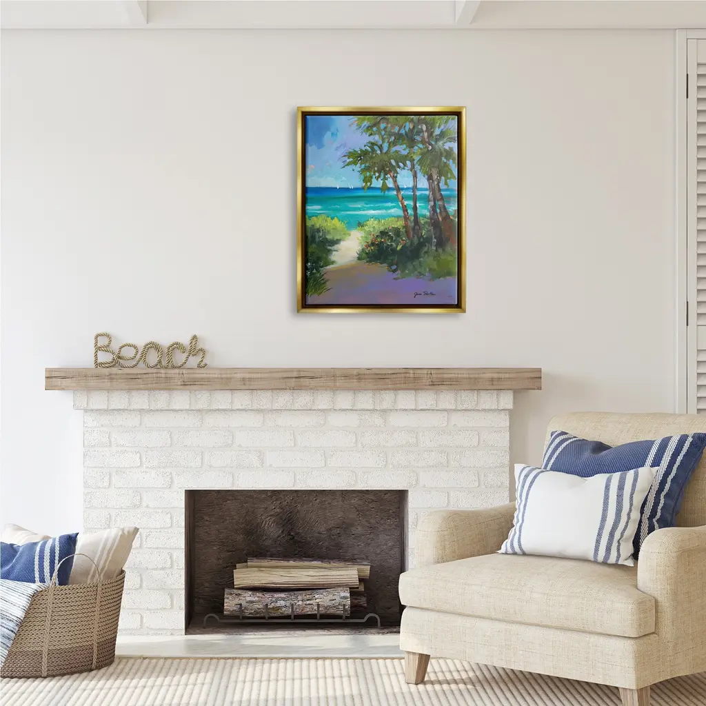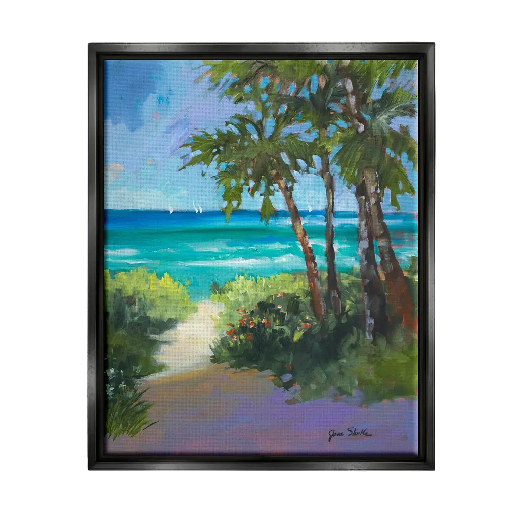 Elevate your home or office to the next level with Stupell Framed Floating Canvas Wall Art. Our premium hand-stretched canvas is mounted securely into a sturdy lightweight frame. The museum-style gap between the wrapped canvas and the box frame gives the illusion of floating artwork. Stupell Wall Art is made in the USA.Features: Dimensions: 17 x 1.7 x 21 Frame, 16 x 1.5 x 20 Canvas ArtFloating Frame Sizes Include Standard: 17 x 1.7 x 21 Oversized: 25 x 1.7 x 31Wall Art is Ready to Hang with Hardware Free Hanging. No installation required. For Easy Set Up Lean or Layer Artwork on Shelf or Against Wall.Our elevated 1.7" Thick Floating Frame is the perfect complement to our canvas style Wall Art. We use only the highest quality inks in house with industry leading printing solutions. Canvas is hand stretched over a durable wood foundation and then mounted securly into a Modern Box Frame. Made in the USA.Artwork Relates To: Painting, Plant, Tree, Vegetation, Sea, Water, Land, Shoreline, Animal, Bird, Summer, Coast, Beach, Tropical, LandscapeDesign by Jane Slivka