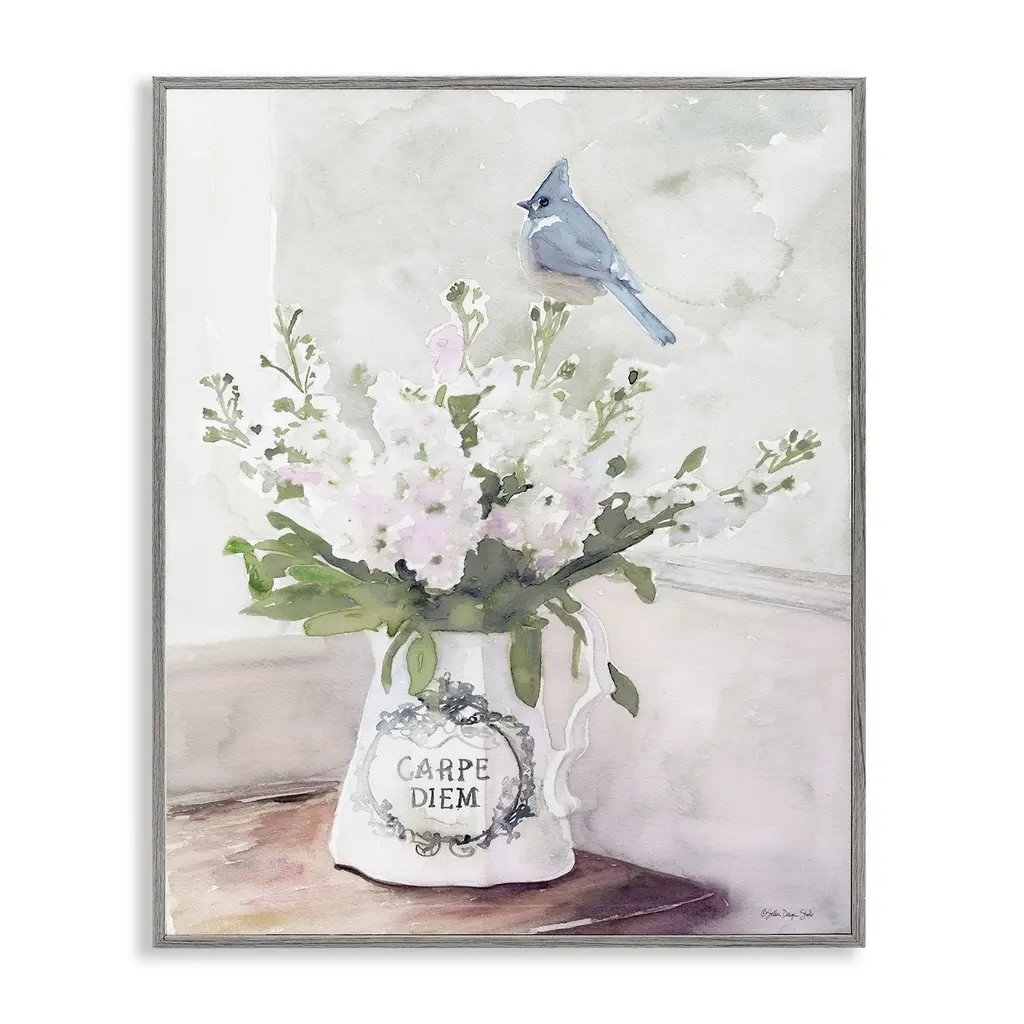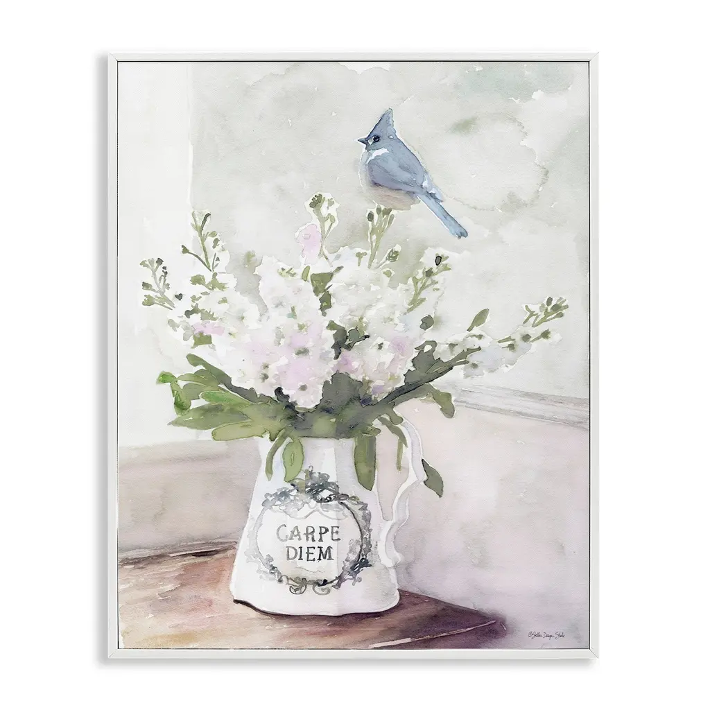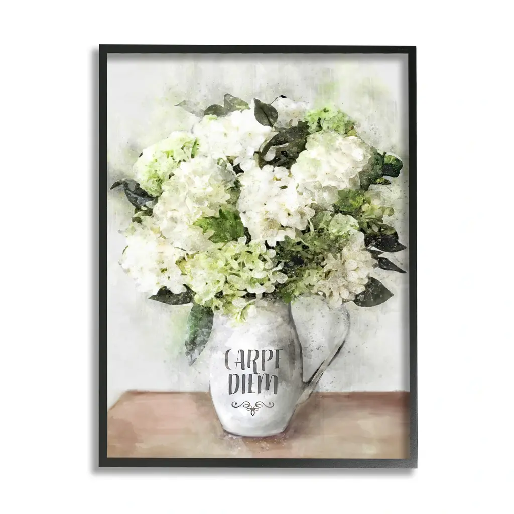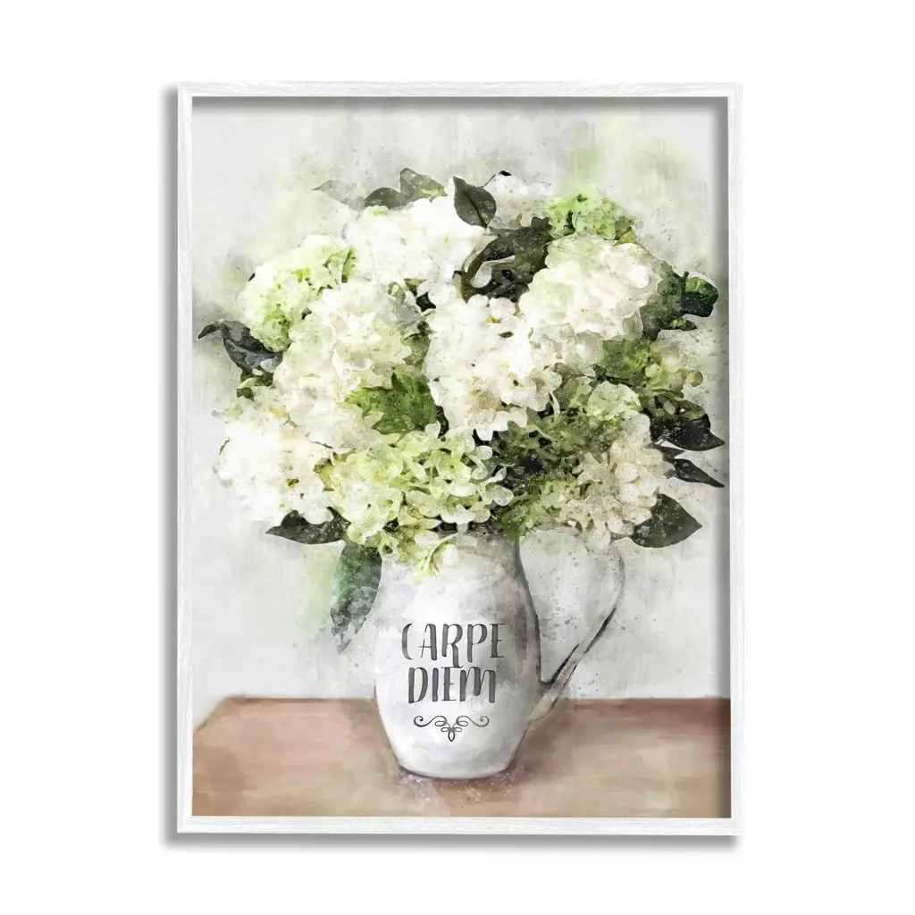 Stupell Carpe Diem Motivation With White Hydrangea Bouquet Framed Wall Art - Multi-Color - 24 X 30 - White