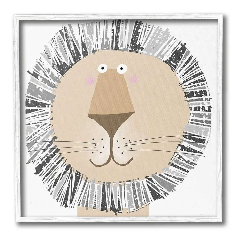 Elevate your home or office to the next level with Stupell Framed Floating Canvas Wall Art. Our premium hand-stretched canvas is mounted securely into a sturdy lightweight frame. The museum-style gap between the wrapped canvas and the box frame gives the illusion of floating artwork. Stupell Wall Art is made in the USA.Features: Dimensions: 18 x 1.7 x 18 Frame, 17 x 1.5 x 17 Canvas ArtFloating Frame Canvas Products are available in sizes 18"x18" and 25"x25". All Floating Frame Canvas Products have a 1.7" Depth.Wall Art is Ready to Hang with Hardware Free Hanging. No Installation required. For Easy Set Up Lean or Layer Artwork on Shelf or Against Wall. Artwork is Permently Fixed into the Frame.Our elevated 1.7" Thick Floating Frame is the perfect complement to our canvas style Wall Art. We use only the highest quality inks in house with industry leading printing solutions. Canvas is hand stretched over a durable wood foundation and then mounted securly into a Modern Box Frame. Made in the USA.Artwork Relates To: Animal, Cartoon, Wildlife, Jungle, Minimal, Whimsical, LionDesign by Carla Daly