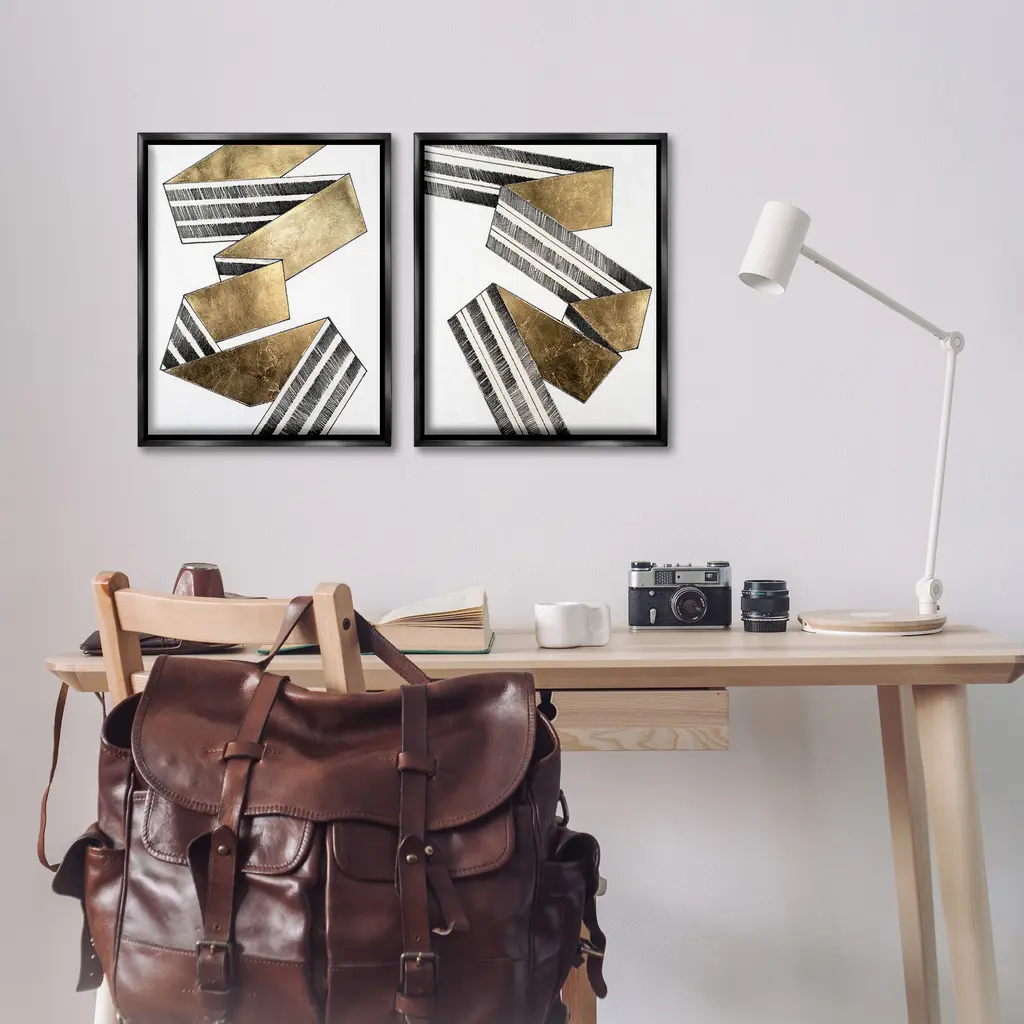 Elevate your home or office to the next level with Stupell Framed Floating Canvas Wall Art. Our premium hand-stretched canvas is mounted securely into a sturdy lightweight frame. The museum-style gap between the wrapped canvas and the box frame gives the illusion of floating artwork. Stupell Wall Art is made in the USA.Features: Dimensions: 2 Piece Set, Each Frame is 17 x 1.7 x 21Two Piece Floater Framed Canvas are available as 17x21 or 25x31 Panels. All Floater Frame Products have a 1.7" Depth.Wall Art is Ready to Hang with Hardware Free Hanging. No Installation required. For Easy Set Up Lean or Layer Artwork on Shelf or Against Wall. Artwork is Permently Fixed into the Frame.Our elevated 1.7" Thick Floating Frame is the perfect complement to our canvas style Wall Art. We use only the highest quality inks in house with industry leading printing solutions. Canvas is hand stretched over a durable wood foundation and then mounted securly into a Modern Box Frame. Made in the USA.Artwork Relates To: Abstract, Modern, Geometric, Pattern, Stripes, Ribbon, GlamDesign by Vanna Lam