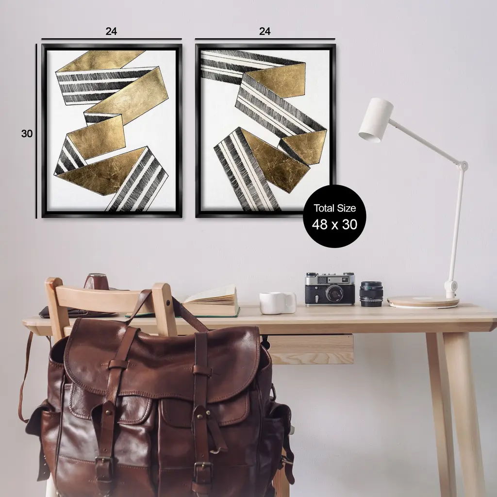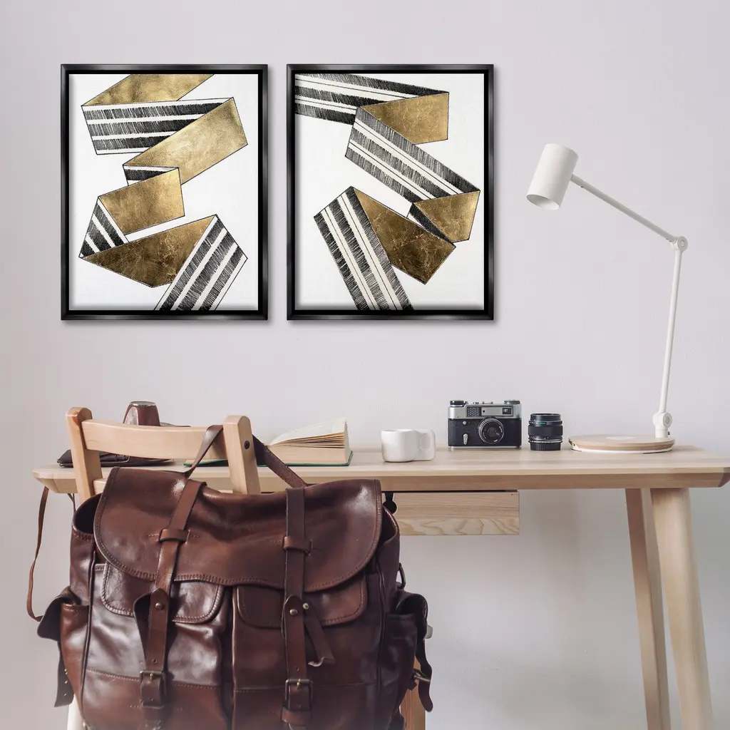 Elevate your home or office to the next level with Stupell Framed Floating Canvas Wall Art. Our premium hand-stretched canvas is mounted securely into a sturdy lightweight frame. The museum-style gap between the wrapped canvas and the box frame gives the illusion of floating artwork. Stupell Wall Art is made in the USA.Features: Dimensions: 2 Piece Set, Each Frame is 17 x 1.7 x 21Two Piece Floater Framed Canvas are available as 17x21 or 25x31 Panels. All Floater Frame Products have a 1.7" Depth.Wall Art is Ready to Hang with Hardware Free Hanging. No Installation required. For Easy Set Up Lean or Layer Artwork on Shelf or Against Wall. Artwork is Permently Fixed into the Frame.Our elevated 1.7" Thick Floating Frame is the perfect complement to our canvas style Wall Art. We use only the highest quality inks in house with industry leading printing solutions. Canvas is hand stretched over a durable wood foundation and then mounted securly into a Modern Box Frame. Made in the USA.Artwork Relates To: Abstract, Modern, Geometric, Pattern, Stripes, Ribbon, GlamDesign by Vanna Lam
