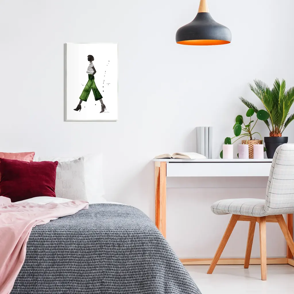 Our wall plaques start as high-quality lithograph prints mounted on durable 0.5-inch thick MDF wood. Each piece is hand finished and comes with a fresh layer of white foil on the sides to give it a crisp, clean look. Plaques arrive ready to hang without installation and come with removable plastic corners to keep them from damage in transit. Stupell Wall Art is made in the USA.Features: Dimensions: 10 x 0.5 x 15 InchesWall Plaque Sizes Include Standard: 10 x 0.5 x 15 Oversized: 13 x 0.5 x 19Wall Art is Ready to Hang with Hardware Free Hanging. No installation required. For Easy Set Up Lean or Layer Artwork on Shelf or Against Wall.All of our wall plaques start off as high quality lithograph prints that are then mounted on durable 0.5 inch thick MDF wood. Each piece is hand finished and comes with a fresh layer of foil on the sides to give it a crisp clean look. Made In USA.Artwork Relates To: Person, Female, Woman, Clothing, Shoe, Silhouette, Fashion, Fashion Illustration, GlamDesign by Simone Elum