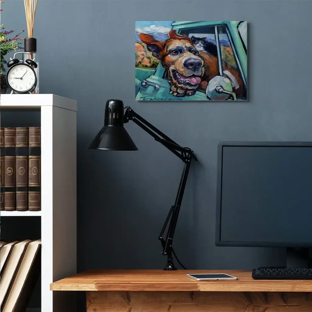 Stupell Cat And Dog In Truck Window Wild Ride Canvas Wall Art - 16 X 20