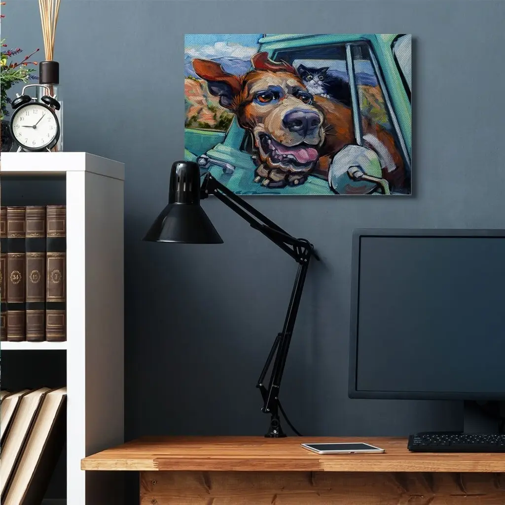 Stupell Cat And Dog In Truck Window Wild Ride Canvas Wall Art - 24 X 30