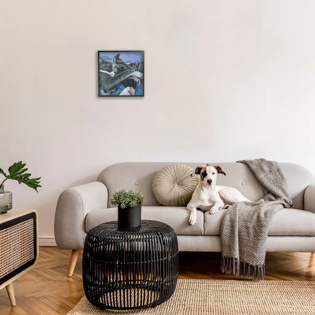 Add dimension to any room with our textured Framed Giclee Artwork. Our framed artwork is securely mounted into a 1.5-inch thick wood grain frame and ready to hang. Frames are available in three alluring styles: black, gray farmhouse and white. In addition, you should check out our oversized options if you want a statement piece. Stupell Wall Art is made in the USA.Features: Dimensions: 12 x 1.5 x 12 FramedFramed Giclee Product Sizes Include 12"x12", 17"x17", and 24"x24". Framed Giclee Products have a 1.5" Depth. Wall Art is Ready to Hang with Hardware Free Hanging. No installation required. For Easy Set Up Lean or Layer Artwork on Shelf or Against Wall.Our giclée prints are carefully mounted on a durable MDF backing, and then perfectly finished in a 1.5 inch thick woodgrain frame. Mounted frame colors include black, gray farmhouse and white. Made In USA.Artwork Relates To: Animal, Dog, Pet, Cat, Cuddle, Sleeping, CozyDesign by Nadi Spencer