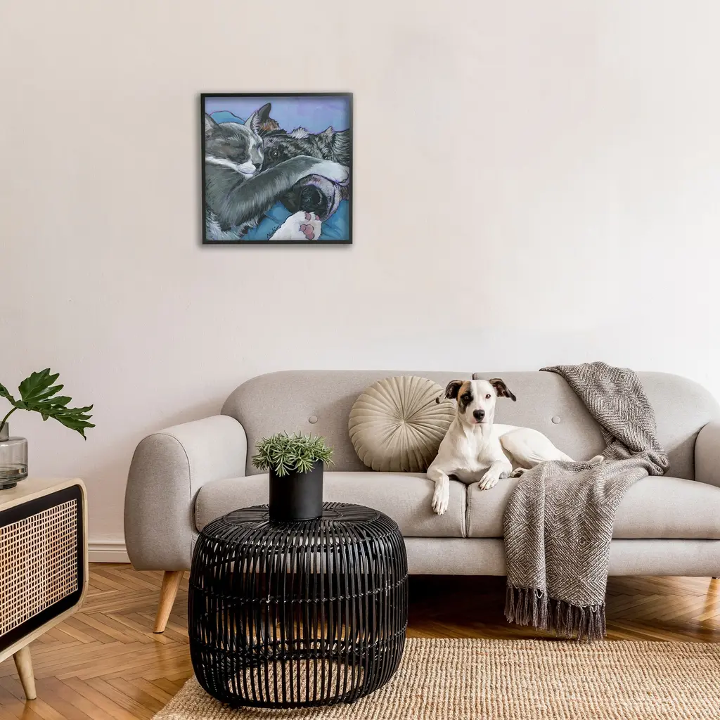 Add dimension to any room with our textured Framed Giclee Artwork. Our framed artwork is securely mounted into a 1.5-inch thick wood grain frame and ready to hang. Frames are available in three alluring styles: black, gray farmhouse and white. In addition, you should check out our oversized options if you want a statement piece. Stupell Wall Art is made in the USA.Features: Dimensions: 12 x 1.5 x 12 FramedFramed Giclee Product Sizes Include 12"x12", 17"x17", and 24"x24". Framed Giclee Products have a 1.5" Depth. Wall Art is Ready to Hang with Hardware Free Hanging. No installation required. For Easy Set Up Lean or Layer Artwork on Shelf or Against Wall.Our giclée prints are carefully mounted on a durable MDF backing, and then perfectly finished in a 1.5 inch thick woodgrain frame. Mounted frame colors include black, gray farmhouse and white. Made In USA.Artwork Relates To: Animal, Dog, Pet, Cat, Cuddle, Sleeping, CozyDesign by Nadi Spencer
