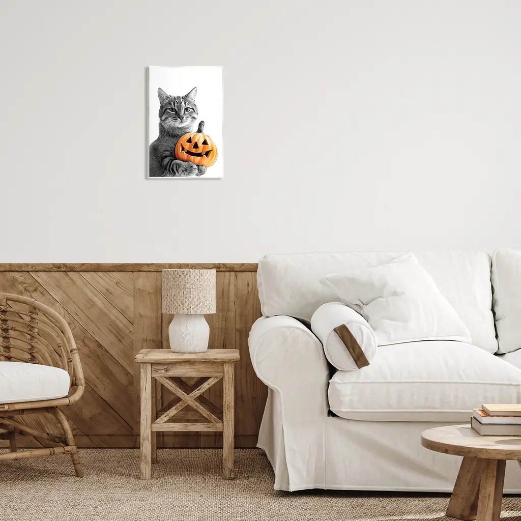 Our wall plaques start as high-quality lithograph prints mounted on durable 0.5-inch thick MDF wood. Each piece is hand finished and comes with a fresh layer of white foil on the sides to give it a crisp, clean look. Plaques arrive ready to hang without installation and come with removable plastic corners to keep them from damage in transit. Stupell Industries Wall Art is made in the USA.Features: Dimensions: 10 x 0.5 x 15 InchesWall Plaque Sizes Include Standard: 10 x 0.5 x 15 Oversized: 13 x 0.5 x 19Wall Art is Ready to Hang with Hardware Free Hanging. No installation required. For Easy Set Up Lean or Layer Artwork on Shelf or Against Wall.All of our wall plaques start off as high quality lithograph prints that are then mounted on durable 0.5 inch thick MDF wood. Each piece is hand finished and comes with a fresh layer of foil on the sides to give it a crisp clean look. Made In USA.Artwork Relates To: Animal, Cat, Mammal, Pet, Halloween, Manx, Jack-o-Lantern, Pumpkin, Fall, AutumnDesign by Annalisa Latella