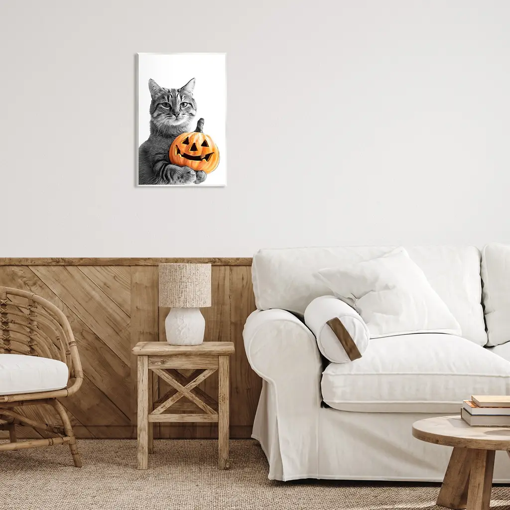 Stupell Cat & Jack-O-Lantern Wall Plaque Art Annalisa Latella - 13 X 19