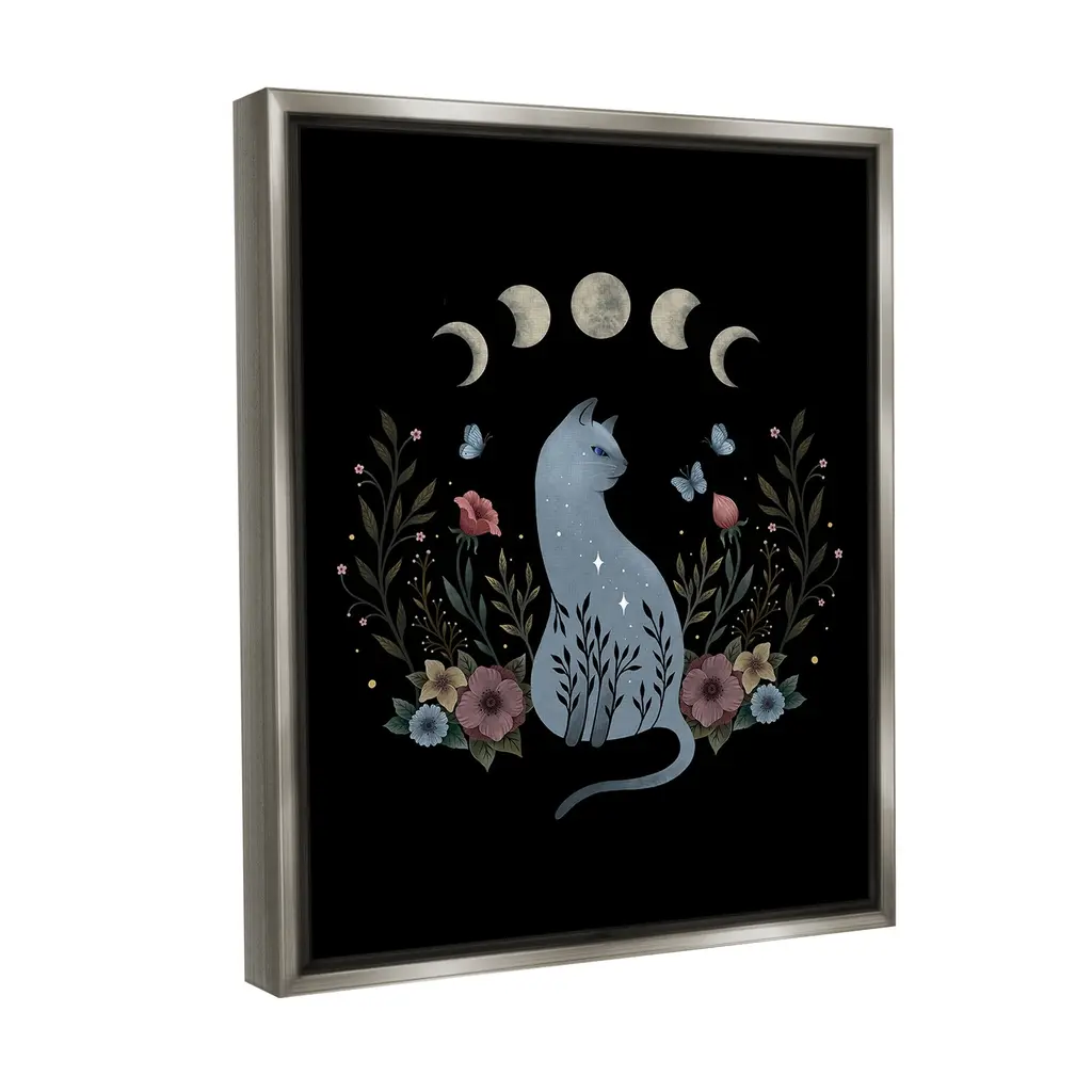 Elevate your home or office to the next level with Stupell Framed Floating Canvas Wall Art. Our premium hand-stretched canvas is mounted securely into a sturdy lightweight frame. The museum-style gap between the wrapped canvas and the box frame gives the illusion of floating artwork. Stupell Wall Art is made in the USA.Features: Dimensions: 17 x 1.7 x 21 Frame, 16 x 1.5 x 20 Canvas ArtFloating Frame Canvas Products are available in sizes 17"x21" and 25"x31". All Floating Frame Canvas Products have a 1.7" Depth.Wall Art is Ready to Hang with Hardware Free Hanging. No Installation required. For Easy Set Up Lean or Layer Artwork on Shelf or Against Wall. Artwork is Permently Fixed into the Frame.Our elevated 1.7" Thick Floating Frame is the perfect complement to our canvas style Wall Art. We use only the highest quality inks in house with industry leading printing solutions. Canvas is hand stretched over a durable wood foundation and then mounted securly into a Modern Box Frame. Made in the USA.Artwork Relates To: Nature, Night, Astronomy, Moon, Animal, Pattern, Cat, Mammal, Pet, Butterfly, Moon Phase, Moon, Flower, Floral, BotanicalDesign by Episodic Drawings