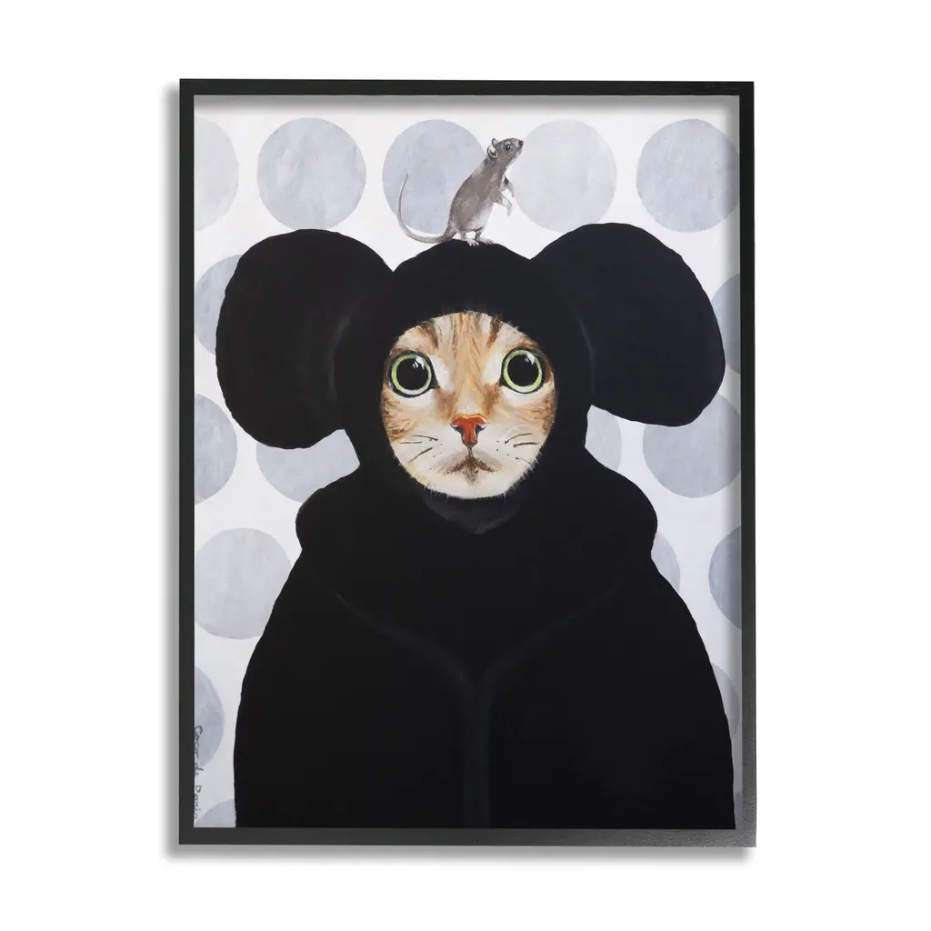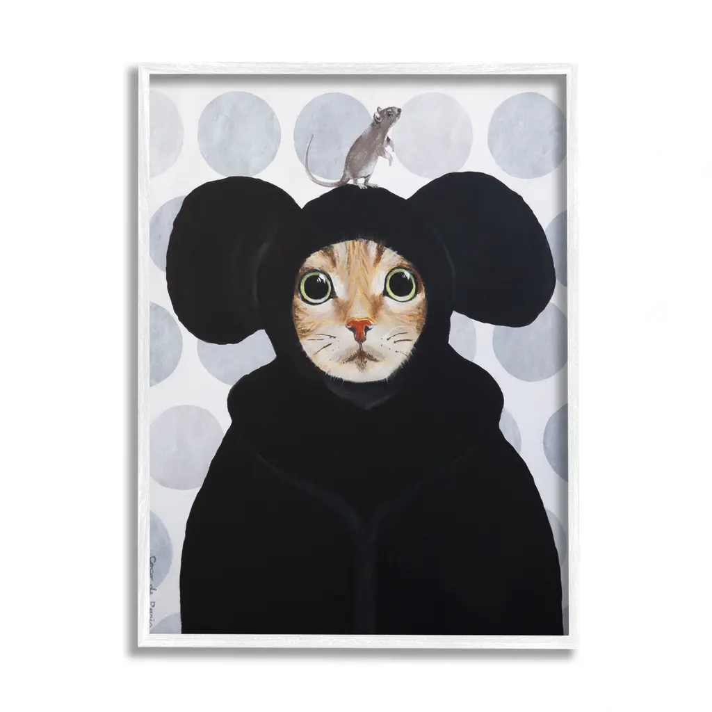 Add dimension to any room with our textured Framed Giclee Artwork. Our framed artwork is securely mounted into a 1.5-inch thick wood grain frame and ready to hang. Frames are available in three alluring styles: black, gray farmhouse and white. In addition, you should check out our oversized options if you want a statement piece. Stupell Wall Art is made in the USA.Features: Dimensions: 11 x 1.5 x 14 FramedFramed Giclee Sizes Include Standard: 11 x 1.5 x 14 Large: 16 x 1.5 x 20 Oversized: 24 x 1.5 x 30Wall Art is Ready to Hang - No Installation or Hardware Needed. For Easy Set Up Lean or Layer Artwork on Shelf or Against Wall.Our giclée prints are carefully mounted on a durable MDF backing, and then perfectly finished in a 1.5 inch thick woodgrain frame. Mounted frame colors include black, gray farmhouse and white. Made In USA.Artwork Relates To: Modern, Painting, Animal, Mammal, Cat, Mouse, Pattern, Polka DotDesign by Coco de Paris