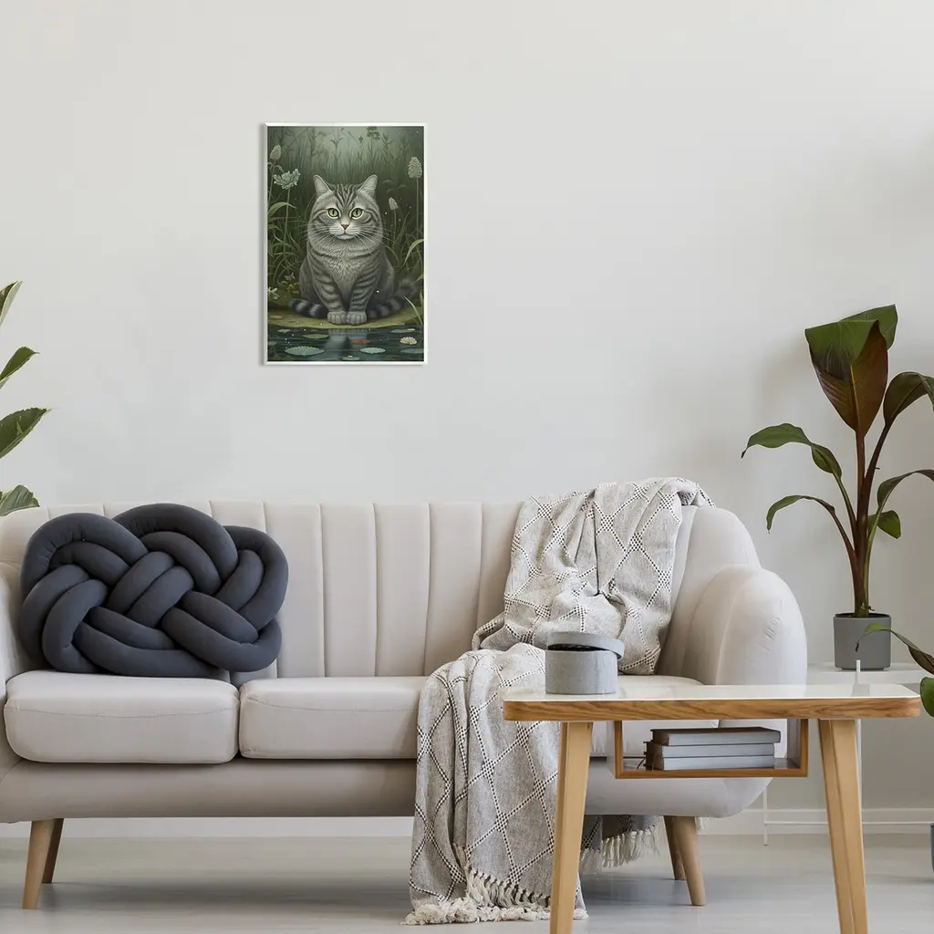 Stupell Cat & Pond Lilies Wall Plaque Art Design By Lsr Design Studio - 13 X 19