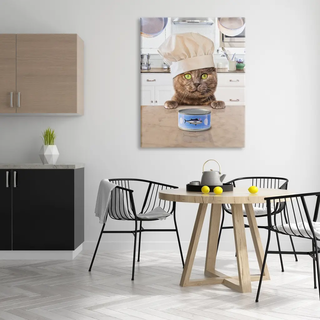 We create our stretched canvas to the highest standards. Using only the highest quality inks and canvas on Mimaki printers, we hand-cut and stretch each piece over a 1.5-inch thick wooden frame for hanging. As a result, the art comes ready to hang on the sturdy ledge with no installation required. Stupell Wall Art is made in the USA.Features: Dimensions: 16 x 1.5 x 20 InchesStretched Canvas Sizes Include Standard: 16 x 1.5 x 20 Large: 20 x 1.5 x 30 X-Large: 30 x 1.5 x 40 Oversized: 36 x 1.5 x 48Wall Art is Ready to Hang with Hardware Free Hanging. No installation required. For Easy Set Up Lean or Layer Artwork on Shelf or Against Wall.Our stretched canvas is created with the highest standards. We use only the highest quality inks and canvas on our in house Mimaki printers, and then hand cut and stretch each piece over a 1.5 inch thick wooden frame for hanging. Made In USA.Artwork Relates To: Kitchen, Tuna, Funny, Animal, Cat, Mammal, PetDesign by Michael Quackenbush
