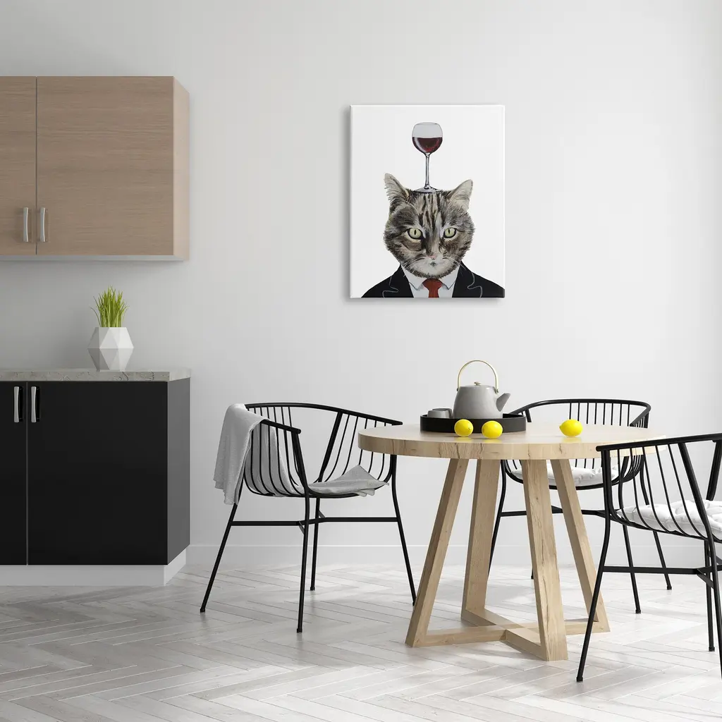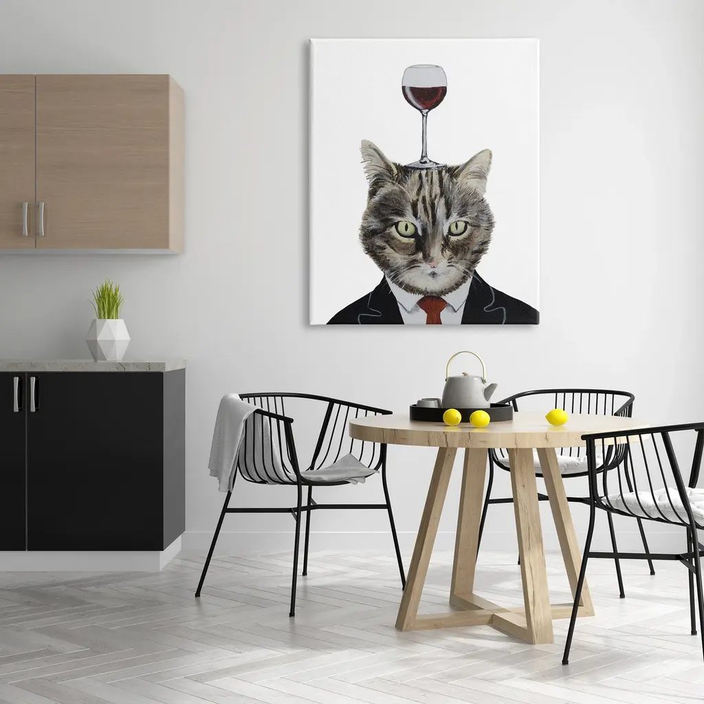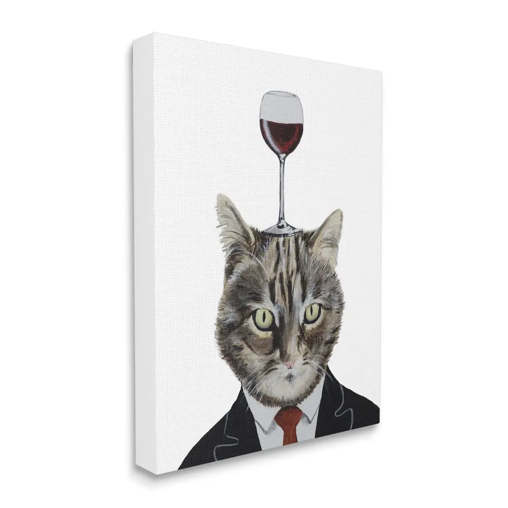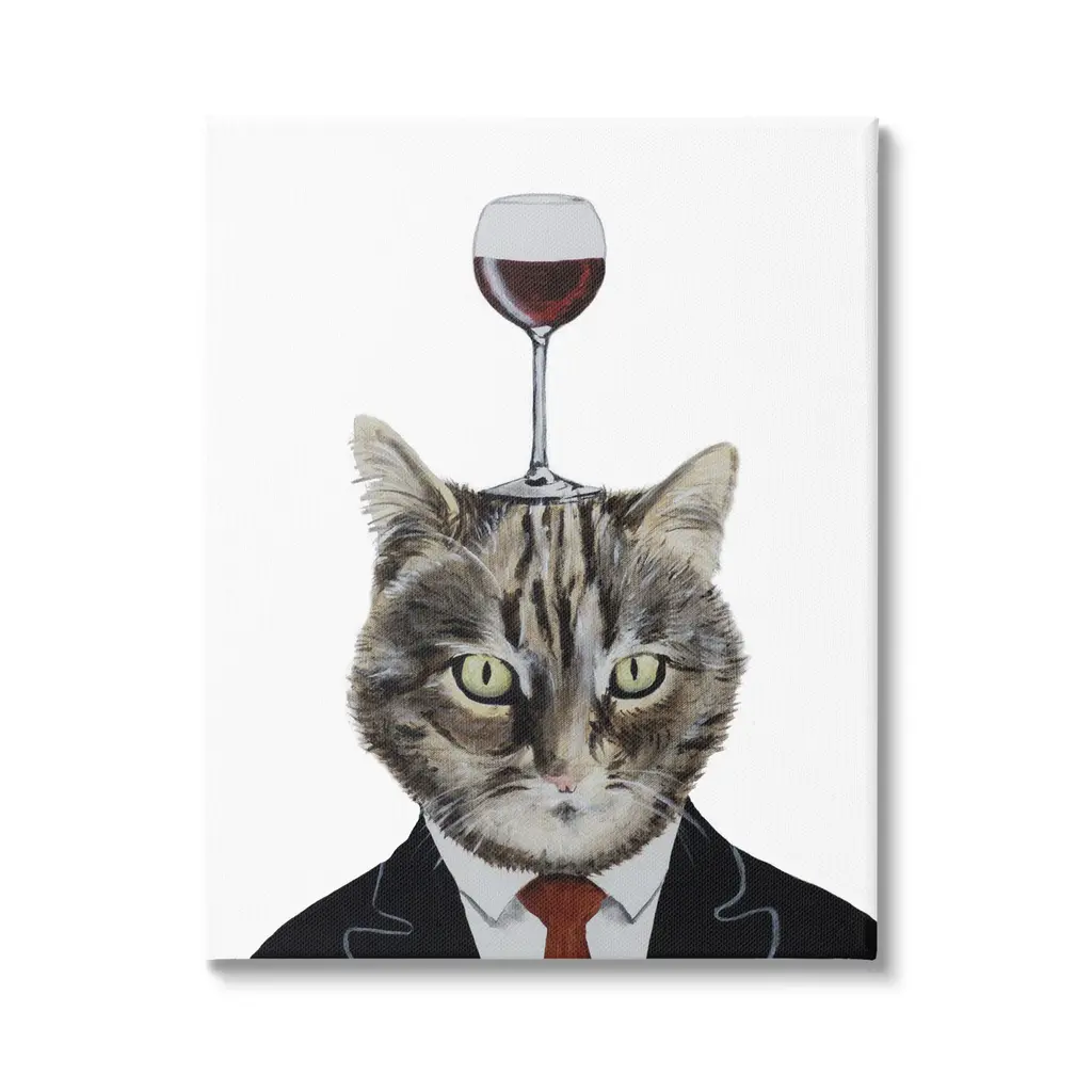 We create our stretched canvas to the highest standards. Using only the highest quality inks and canvas on Mimaki printers, we hand-cut and stretch each piece over a 1.5-inch thick wooden frame for hanging. As a result, the art comes ready to hang on the sturdy ledge with no installation required. Stupell Wall Art is made in the USA.Features: Dimensions: 16 x 1.5 x 20 InchesStretched Canvas Sizes Include Standard: 16 x 1.5 x 20 Large: 20 x 1.5 x 30 X-Large: 30 x 1.5 x 40 Oversized: 36 x 1.5 x 48Wall Art is Ready to Hang - No Installation or Hardware Needed. For Easy Set Up Lean or Layer Artwork on Shelf or Against Wall.Our stretched canvas is created with the highest standards. We use only the highest quality inks and canvas on our in house Mimaki printers, and then hand cut and stretch each piece over a 1.5 inch thick wooden frame for hanging. Made In USA.Artwork Relates To: Alcohol, Beverage, Liquor, Wine, Wine Glass, Animal, Cat, Mammal, Pet, GobletDesign by Coco de Paris